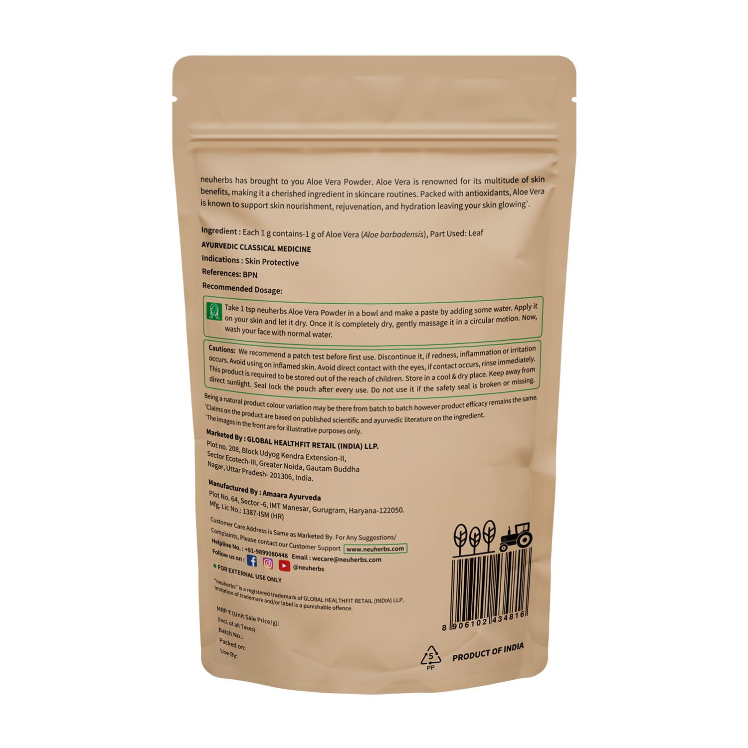 • 100% Natural Aloe Vera Powder: neuherbs Aloe Vera powder or fullers earth for face pack is made from 100% natural & pure Aloe Vera leaves dried for optimal use to support naturally healthy skin.