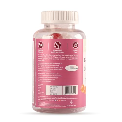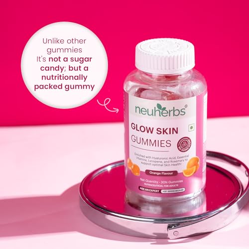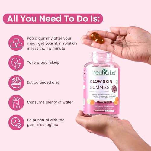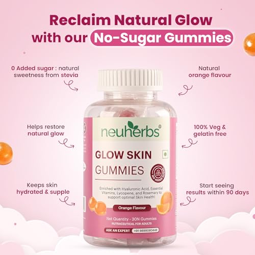 Neuherbs Glow Skin 30 Gummies For Men & Women With Hyaluronic Acid,Vitamins,Lycopene & Rosemary To Support Healthier & Youthful Skin Health,Natural Orange Flavoured,100% Vegetarian,Gelatin Free