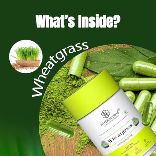 • NATURAL SUPER FOOD ENRICHED ENERGY SUPPLEMENT Nutriherbs Wheatgrass capsules are made in India & free from chemicals and fillers. These capsules should be consumed twice daily for best results. These natural detoxification capsules are organic highly effe