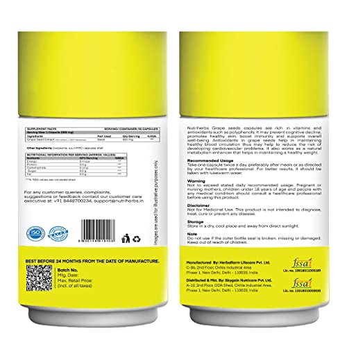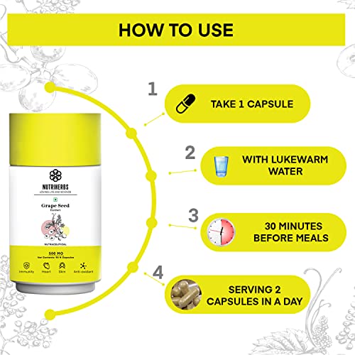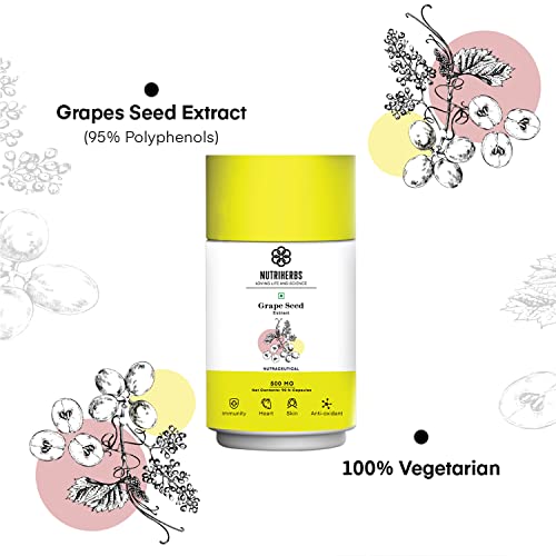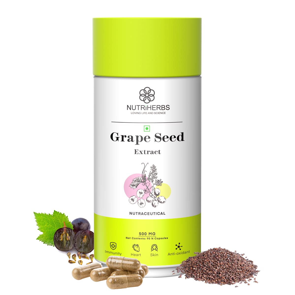 • Nutriherbs grape seed extract capsules are amazing for good skin and hair quality. They help in collagen formation which may enhance the elasticity of your skin thereby extending its youthful look. This supplement also has anti-inflammatory properties whi