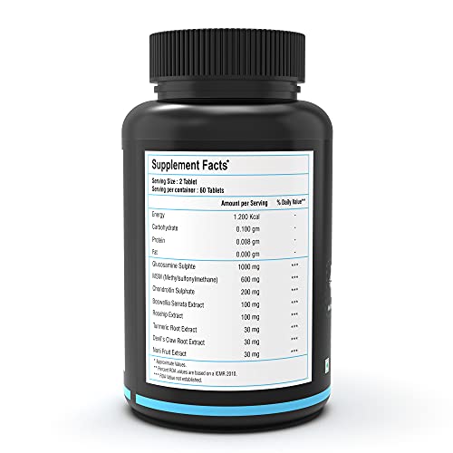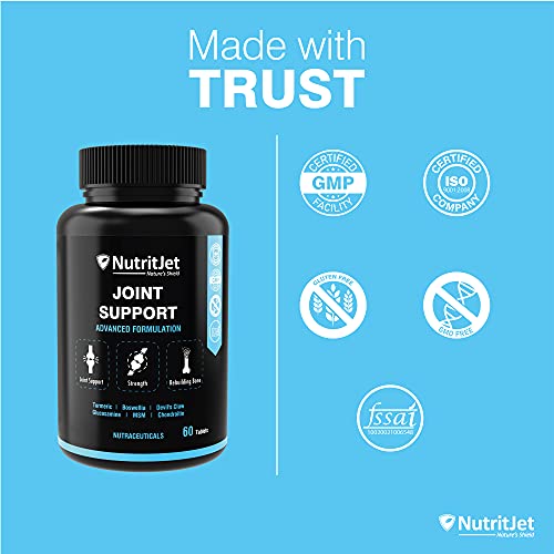 NutritJet Joint Support Supplement with Glucosamine Chondroitin MSM with Boswellia & Turmeric For Joint Strength Mobility and Flexibility 60 Tabs.