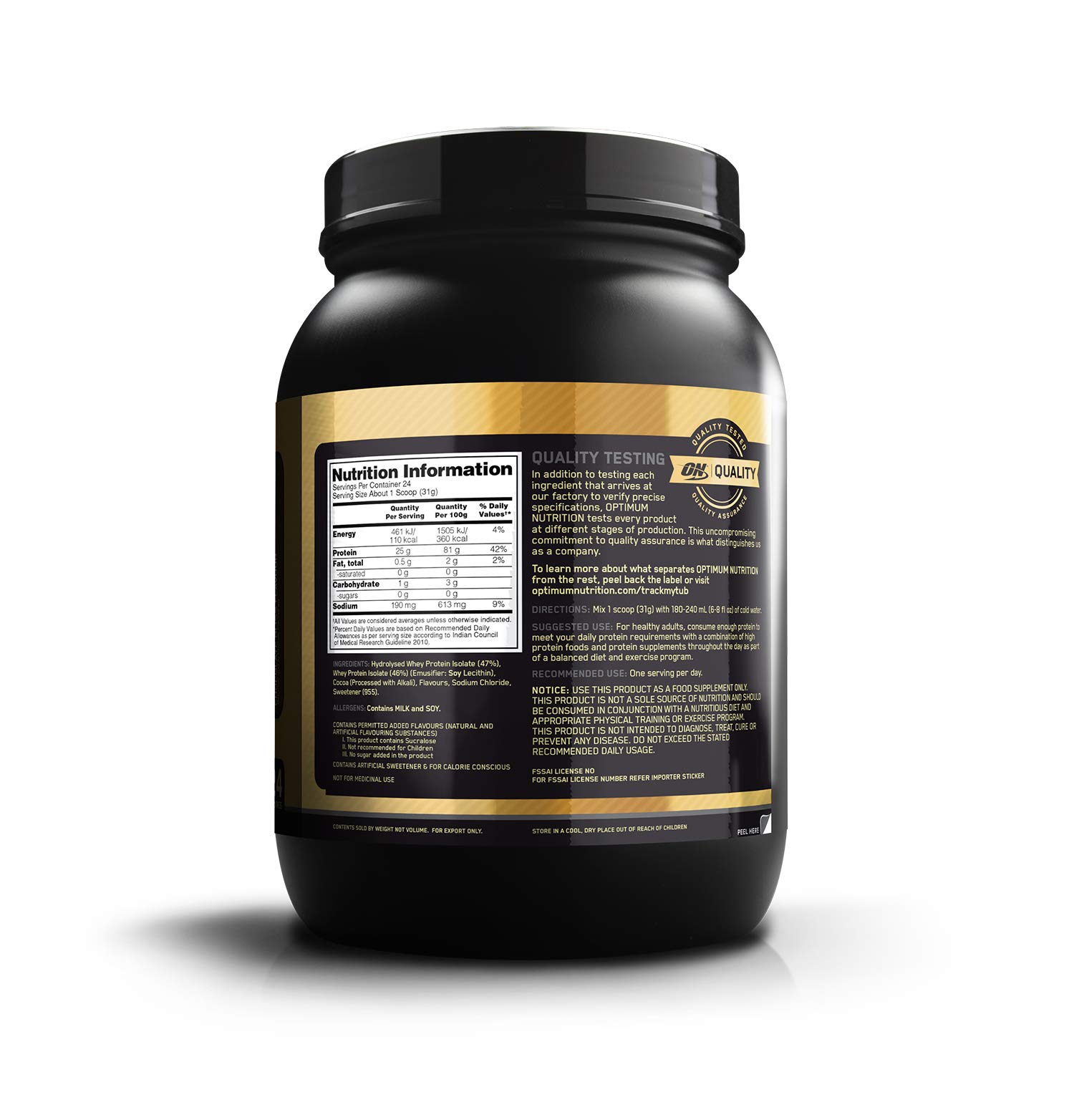Optimum Nutrition (ON) Gold Standard 100% Whey Protein Powder - 5 lbs 2.27 kg (Double Rich Chocolate) Primary Source IsolateFor Men and WomenOptimum Nutrition's Gold Standard 100% Whey uses pure Whey Protein Isolates as the primary ingredient. Combined with ultra-filtered whey protein concentrate each serving provides 24 grams of all-whey protein and 5.5 grams of naturally occurring Branched Chain Amino Acids (BCAAs) which are prized by athletes for their muscle building qualities. With 10 tempting flavors to choose from ON Gold Standard 100% Whey gives you plenty of ways to keep workout recovery interesting. To instantly check the authenticity of your ON product SMS us your 6 digit unique code (on the pack) at 57575 or visit our wesite AUTHENTICATEON.inOptimum Nutrition (ON) Gold Standard 100% Isolate 1.6 lb 744 g (Chocolate Bliss) for Muscle Support & Recovery Vegetarian - 100% Protein from Whey IsolateTo create GOLD STANDARD 100% ISOLATE we start by selecting only the highest quality whey protein which undergoes a series of sophisticated filtration processes to âisolateâ out excess fat cholesterol and sugar. A portion of this Whey Protein Isolate is then hydrolyzed â broken down into smaller chains of amino acids. The final product is a fast-digesting complete protein containing no more than 1 gram of carbohydrates less than a gram of fat and more than 80% pure protein per serving to support your muscle building performance and fitness goals.