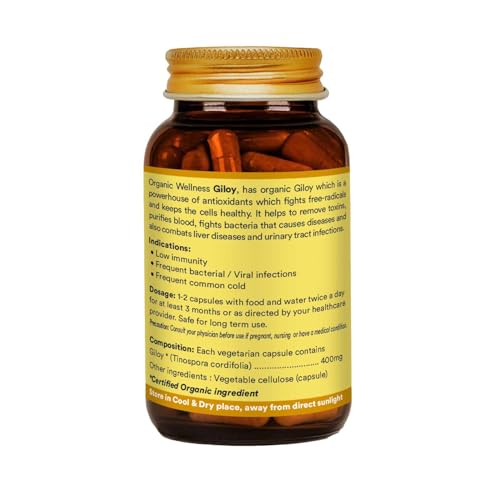 Organic Wellness Giloy Capsules Natural Giloy Antioxidant Properties Purifies Blood Supplement Immunity Booster Health and Wellness (90 N Veg Capsules)