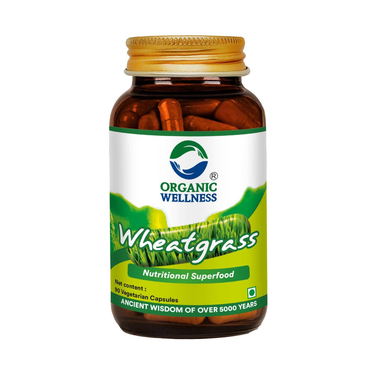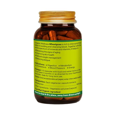 Organic Wellness Wheat Grass 90N Veg Capsules,Dietary Powder Detox Suppliment,for Immunity Booster & Blood Purifier