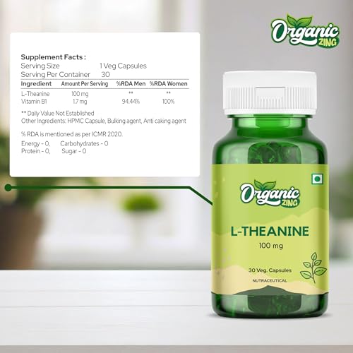 Organic Zing L-Theanine GMP Quality Assured Kosher Vegan | 100mg | 30 capsules