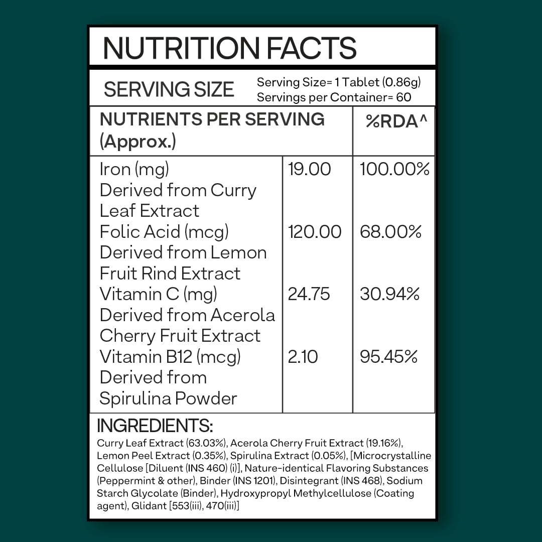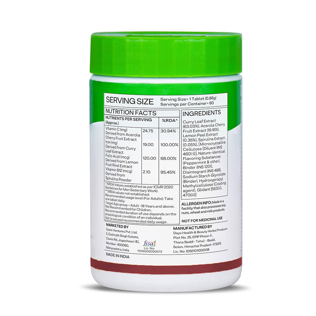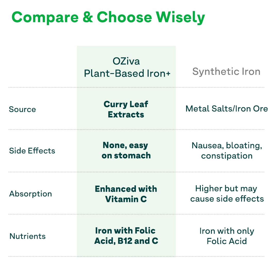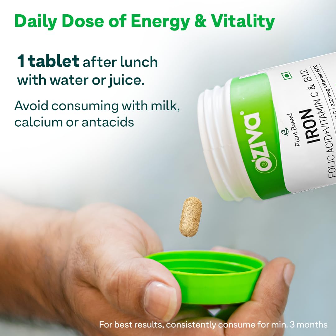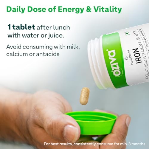• Increased Iron Absorption: OZiva Plant Based Bettr.Iron+ are iron capsules for men and women that ensure better release of iron with CZen Iron a standardised plant extract of Iron. It also provides 100% RDA of iron for women and men.
