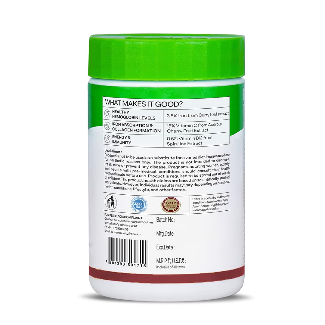 • Suitable for Anyone who is 18+ : Anybody aged 18 and above can consume OZiva Plant Based Bettr.Iron+. If you have an existing medical condition we request you to consult your medical practitioner before taking the product.