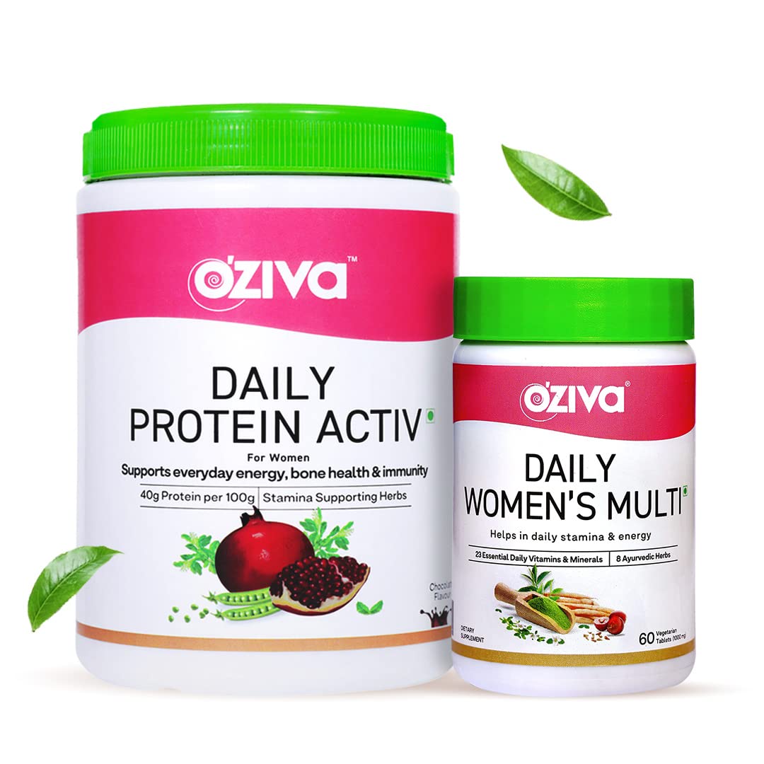 OZiva Daily Protein Activ for Women | Best Protein Powder for Women with 120g and OZiva Multivitamin Tablets for Women - 60 Veg Tablets