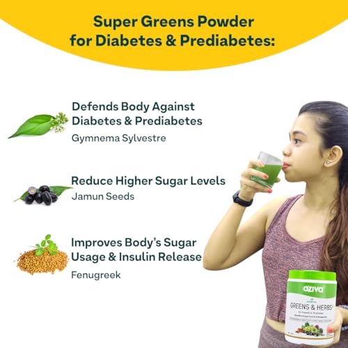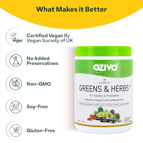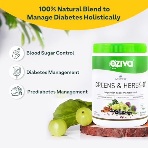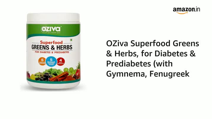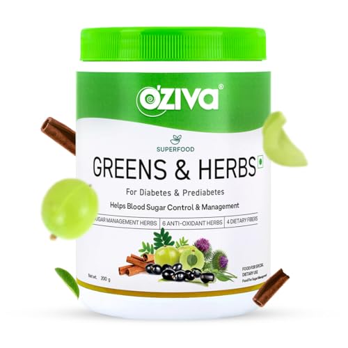 • OZiva Greens & Herbs to Manage Diabetes Better - OZiva Superfood Greens and Herbs is a plant-based blend that combines the goodness of 6 alkalising greens 5 sugar control herbs and antioxidants to help manage diabetes and control blood sugar