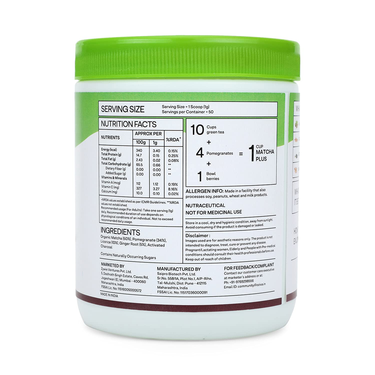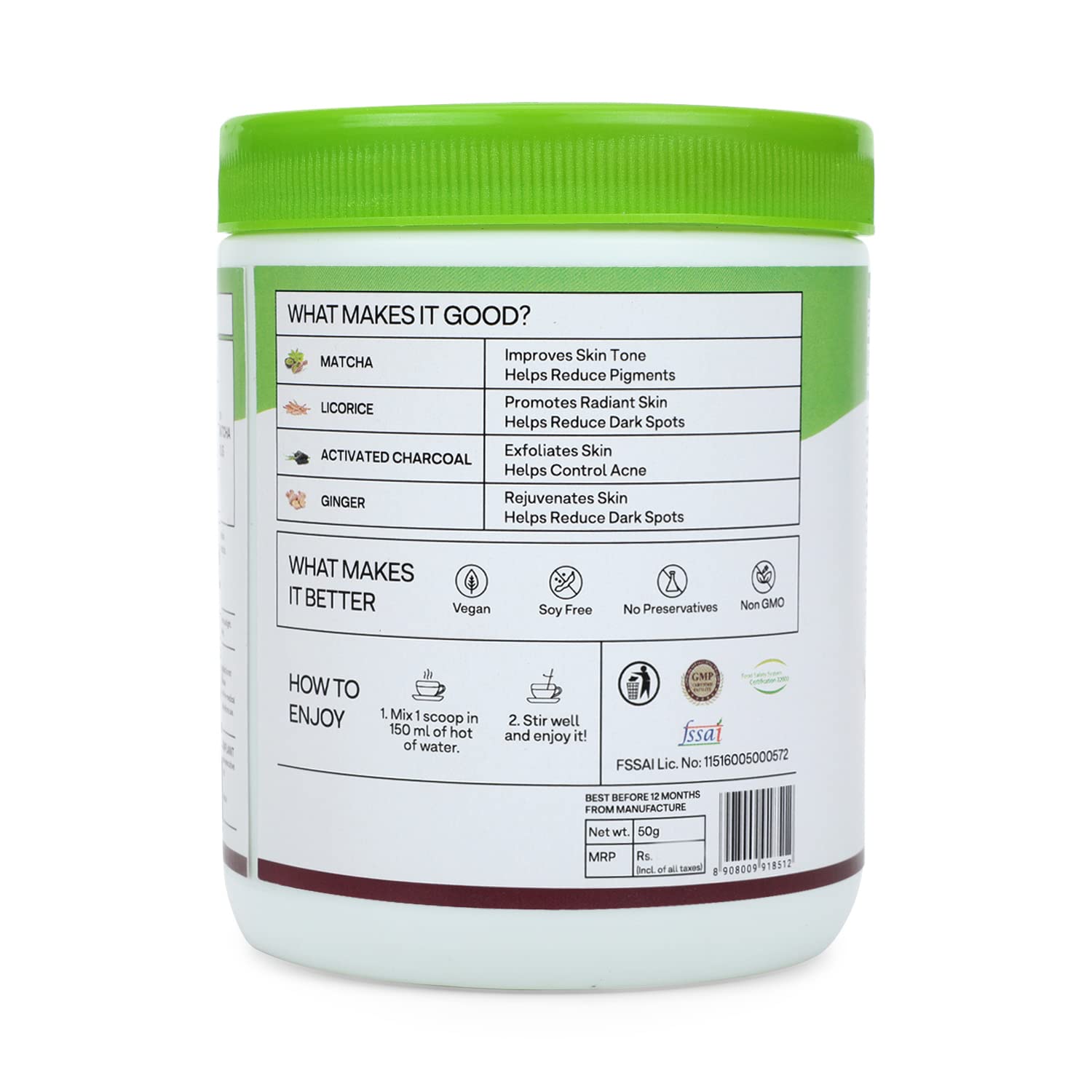 • Skin Brightening for an Even Fresh Tone: OZiva Plant Based Matcha Plus helps reduce dark spots improve skin complexion and even out skin tone with whole foods like Licorice Pomegranate and Ginger. Ginger and Pomegranate are loaded with antioxidants that h