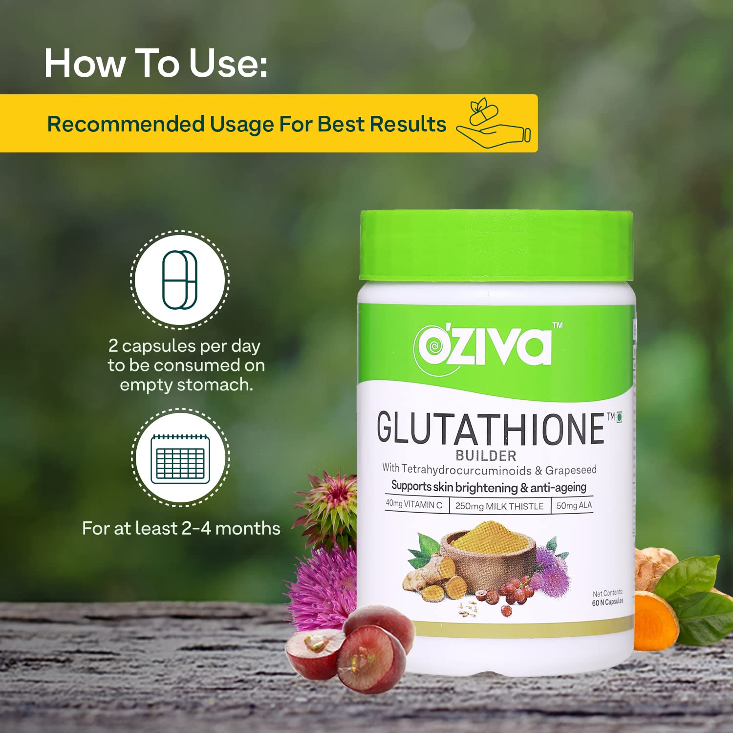 • Natural OZiva Glutathione Builder for Skin brightening: OZiva Plant Based Glutathione Builder helps reduce excessive pigmentation due to melanin by suppressing free radical production from sources like ultraviolet radiation. It also helps increase the lev