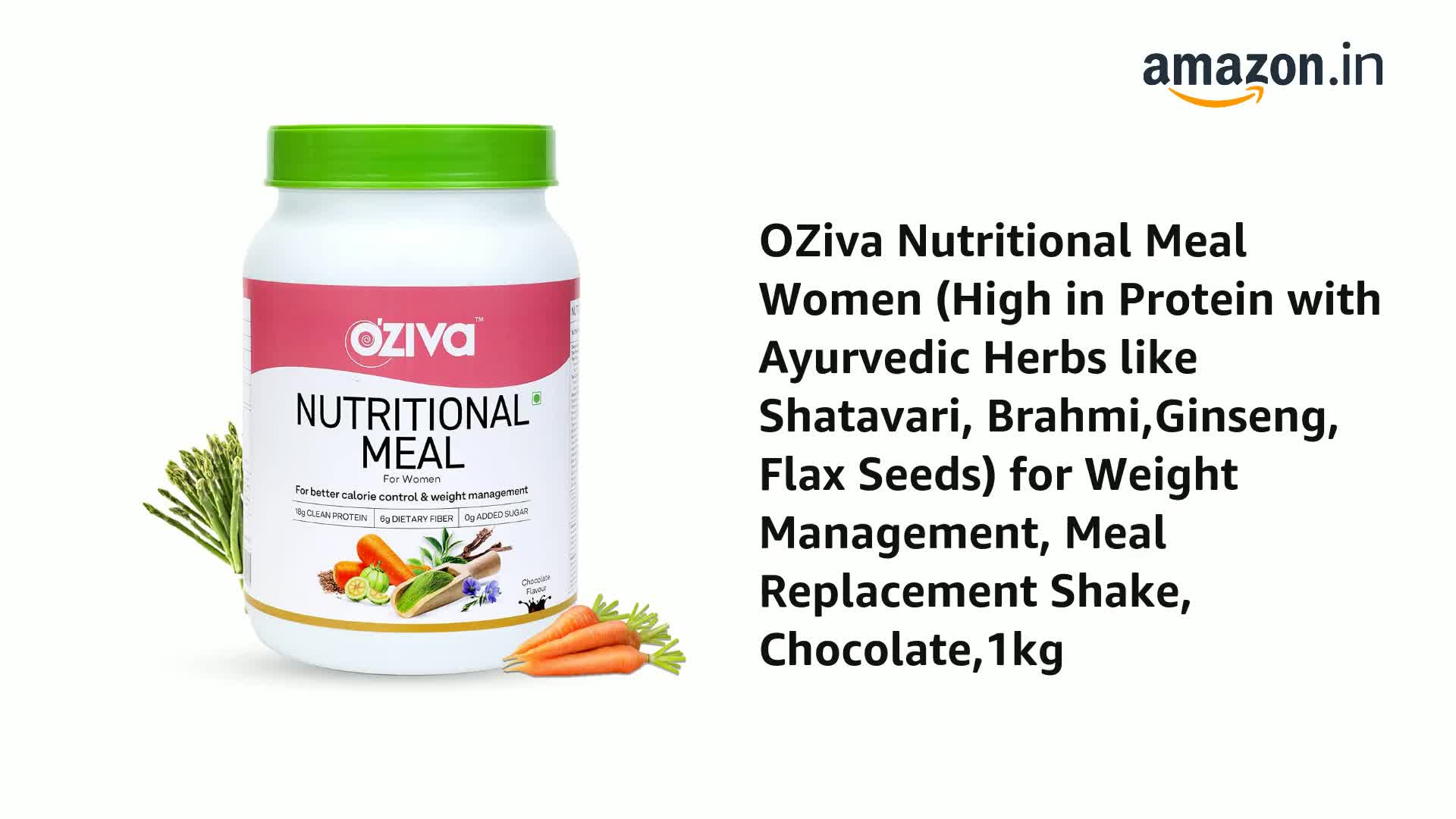 OZiva Nutritional Meal Women (High in Protein with Ayurvedic Herbs like Shatavari, Brahmi,Ginseng, Flax Seeds) for Weight Management, Meal Replacement Shake, Chocolate,1kg