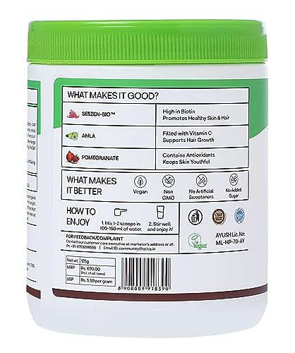 Consuming this product for 3 times, I don't know weather it is benefiting me or not but what I disliked the most is quality of product. They are mixing sand (one can easily find residue in glass after they consume it) in their Biotin powder. I mean seriously....?? We are already paying 699 for 125g and in that also you are mixing sand. This is really sad.Better look for some other brand. Don't go blindly by their so called "plant based".