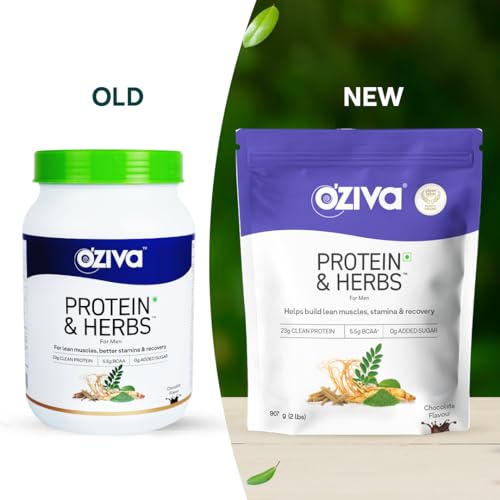 OZiva Protein & Herbs, Men (23g Whey Protein, 5.5g BCAA & Ayurvedic herbs like Ashwagandha, Chlorella & Musli) for Better Stamina & Lean Muscles, (Chocolate, 3kg)