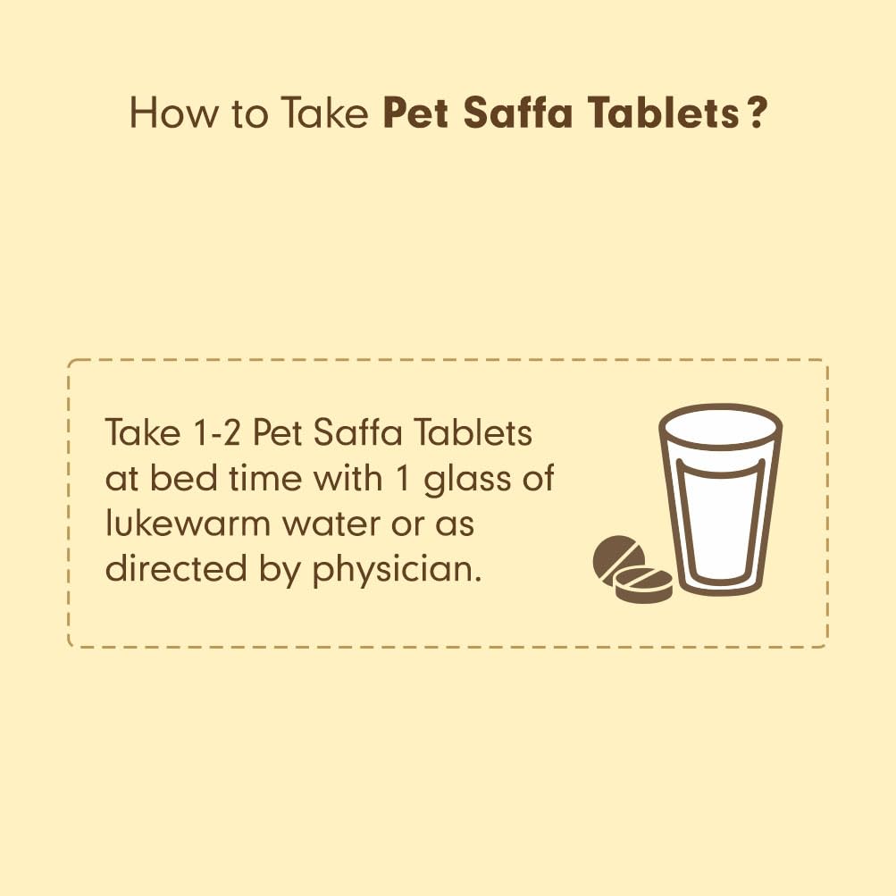 About Pet Saffa Tablets: Pet Saffa Natural Laxative Tablets with the blend of 10 natural ingredients help relieve constipation acidity bloating and gastric. The powerful herbs Senna Triphala Haritaki and Yashtimadhu keep stomach healthy loosen hard stools and prevent usual stomach issues.