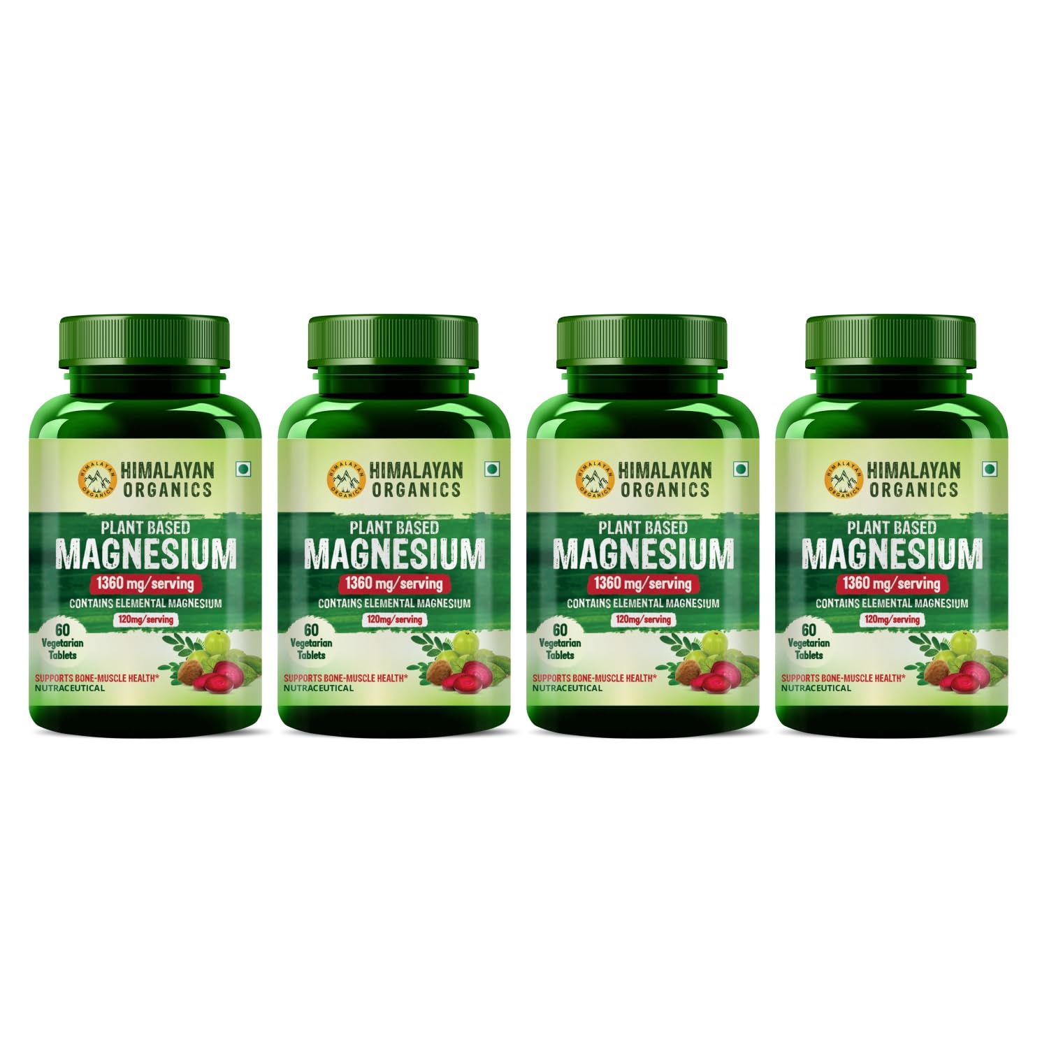 Plant Based Magnesium Supplement 220mg With Turmeric Spirulina Wheatgrass Moringa | Supports Bone Muscle & Bone Health | Boost Energy Level (Pack Of 4)