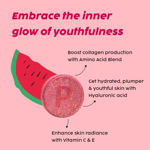 PLIX - THE PLANT FIX Collagen Builder Bubbly Effervescent - 15 Tablets (Pack of 8, Watermelon) for Hydrated Skin & Anti-Aging | Amino Acid Blend For Collagen Production | Vitamin C & E | 100% Vegan