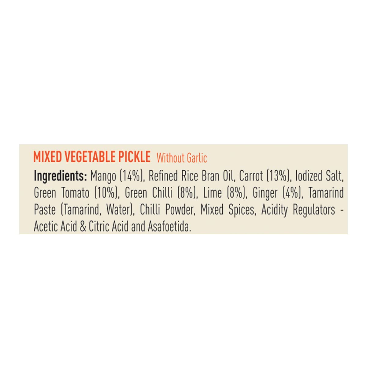 Priya Mixed Vegetable Pickle without Garlic 300g - Authentic Telugu Style Mixed Achar |Traditional South Indian Taste| Homemade Andhra Pickles| Tangy and Spicy| With Tamarind Paste and Mixed Spices| Glass Jar