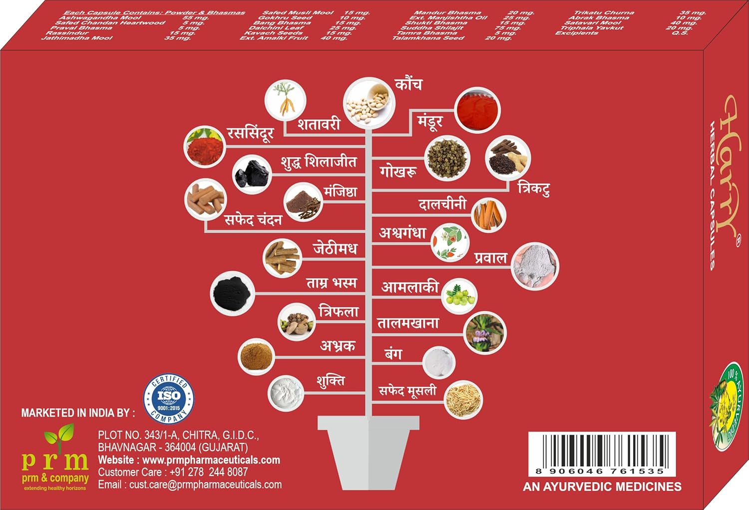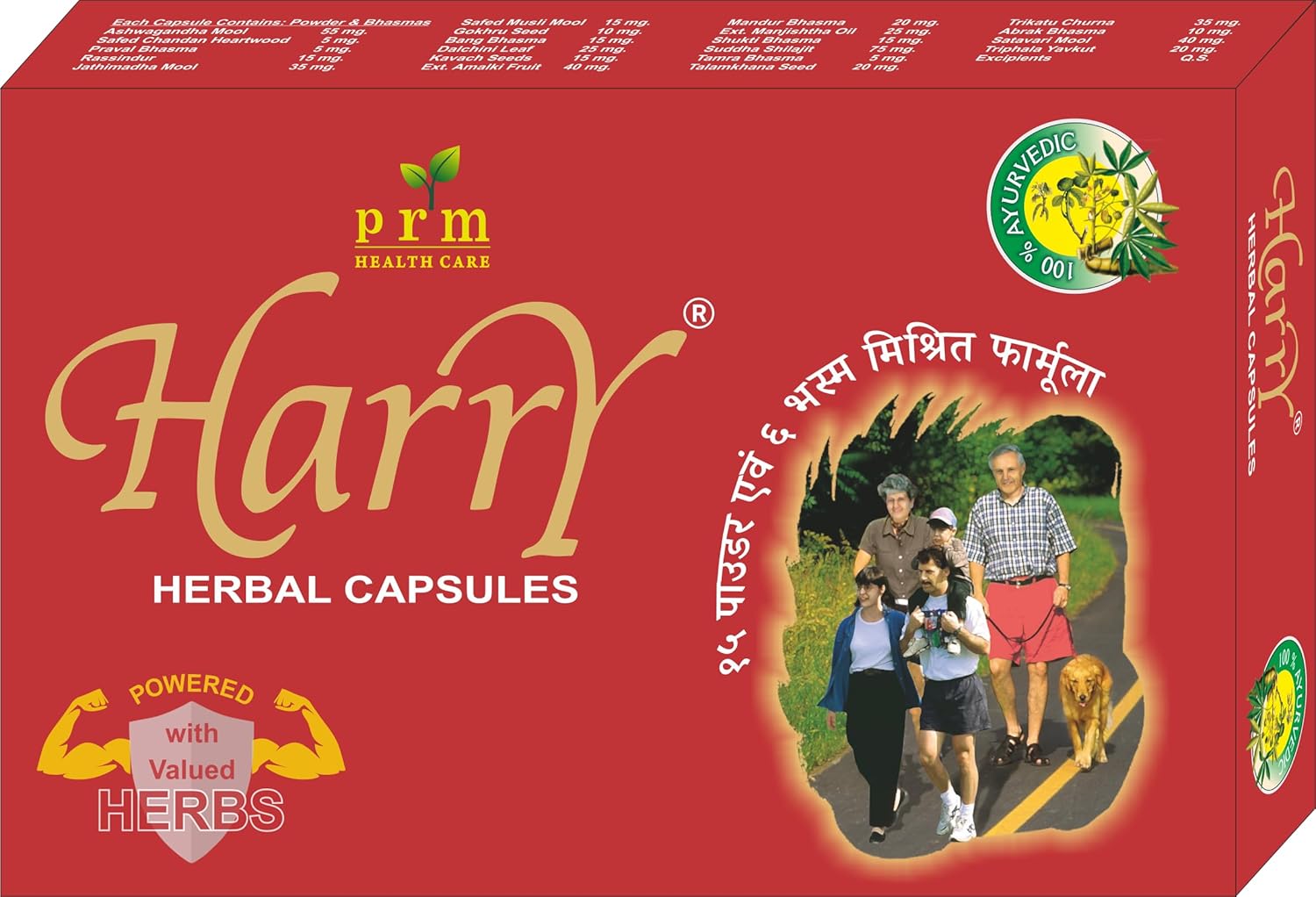 Harry capsules is the summation of selected 21 herbs of which 15 are of powder form and 6 are of bhasmas form, namely Ashwagandha, Shukti Bhasma, Safed Musli, kavach seeds, Manjistha, Abrak Bhasma, Praval Bhasma and many more. The natural ingredients in Harry herbal capsules increase immunity power and relieve tiredness.