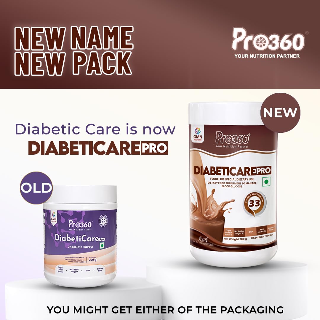 Pro360 DiabetiCare Pro Nutritional Diabetic Protein Food Supplement Powder to Manage Diabetes and Blood Glucose for Adults (Men & Women) - 200gm Jar (Chocolate)
