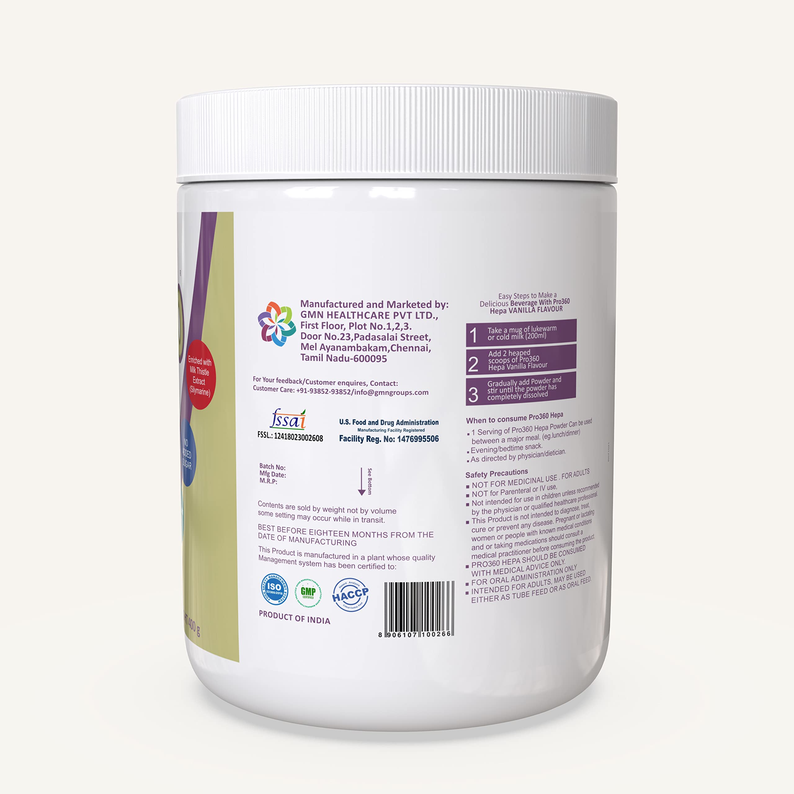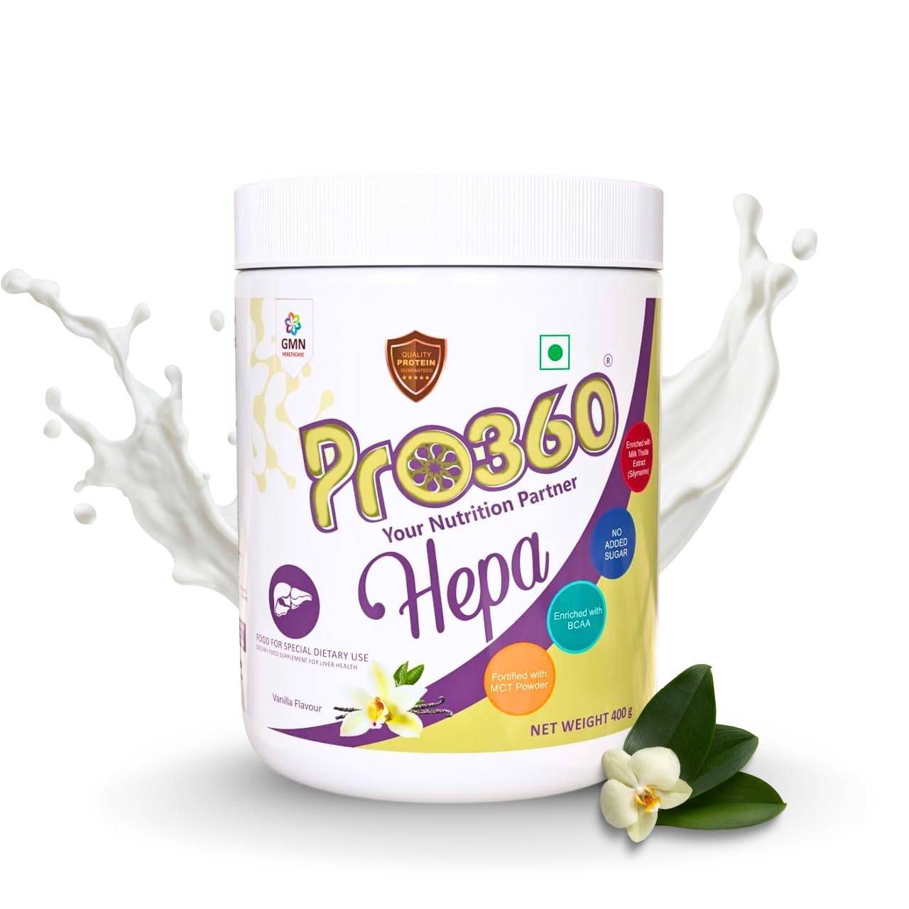 Pro360 Hepa Liver Care Protein Supplement Complete Liver Supplements for Health| Formula Enriched with Silymarin MCT & BCAA Vanilla 400g