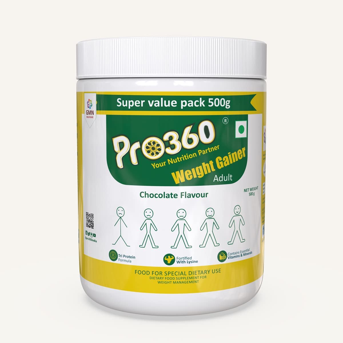 HomeHealth & PersonalDiet & NutritionHealth SupplementsPro360 Weight Gainer for Women & Men | 500g Calorie Rich Supplement with Triple Protein Source & 25 Nutrients for Healthy Weight Gain | Muscel Gainer Protein Powder | Chocolate Flavour