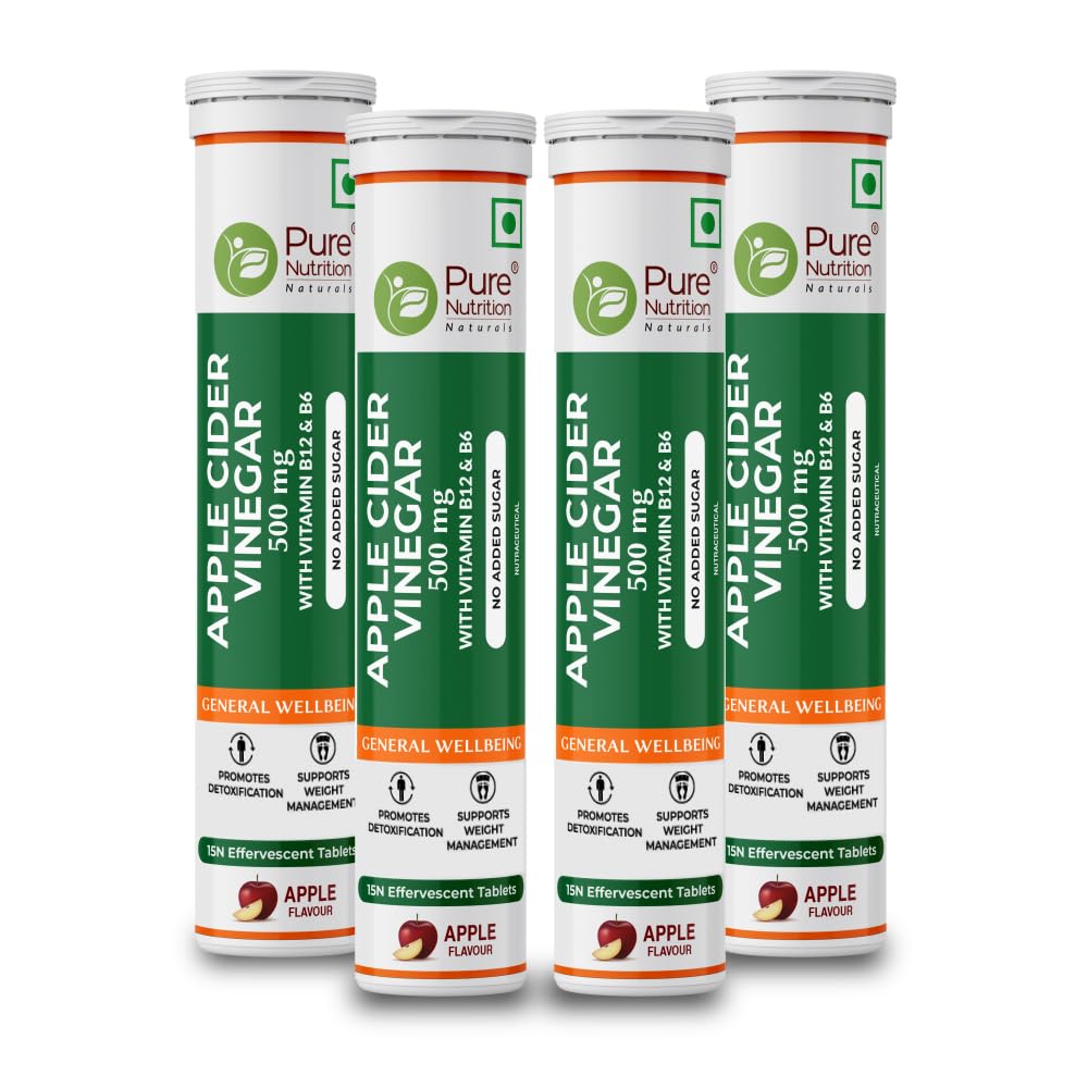 Pure Nutrition ACV 60 Effervescent Tabs (15 x 4) for Weight Management & Gut Health | Apple Cider Vinegar with Mother Vitamin B12 & Garcinia Cambogia To enhance metabolic function & Easy Digestion