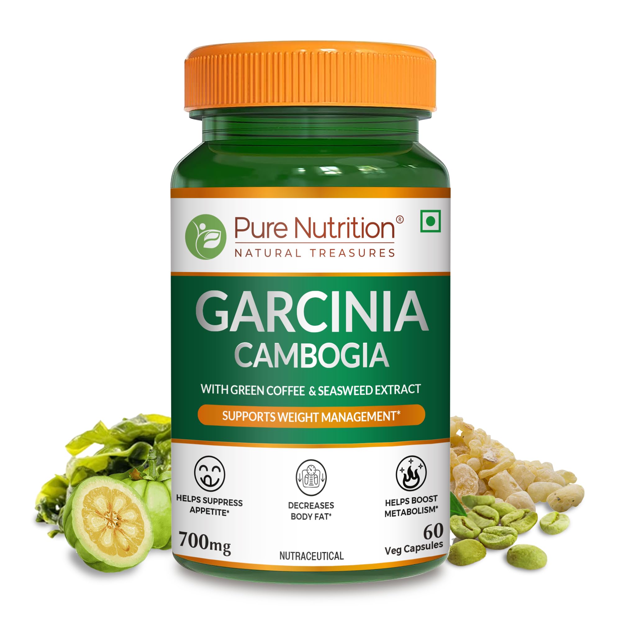 Pure Nutrition Garcinia Cambogia (700mg) - 60 Veg Capsules | with Green Coffee & Seaweed Extract | Supports Healthy Digestion & Metabolism | Aids Weight Management for Men & Women | Natural Energy Boost Supplement