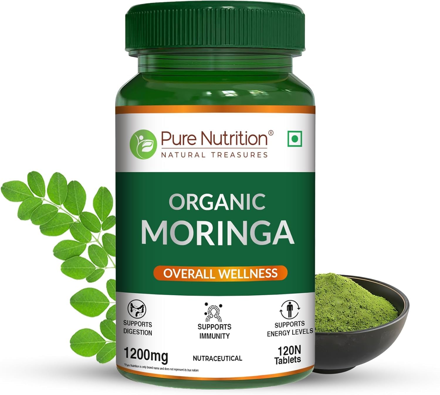 Pure Nutrition Moringa 1200mg 120 Veg Tablets | Rich in Antioxidants Vitamins & Minerals | Supports Healthy Digestion Immunity Energy Levels & Detox | Superfood Supplement for Men & Women