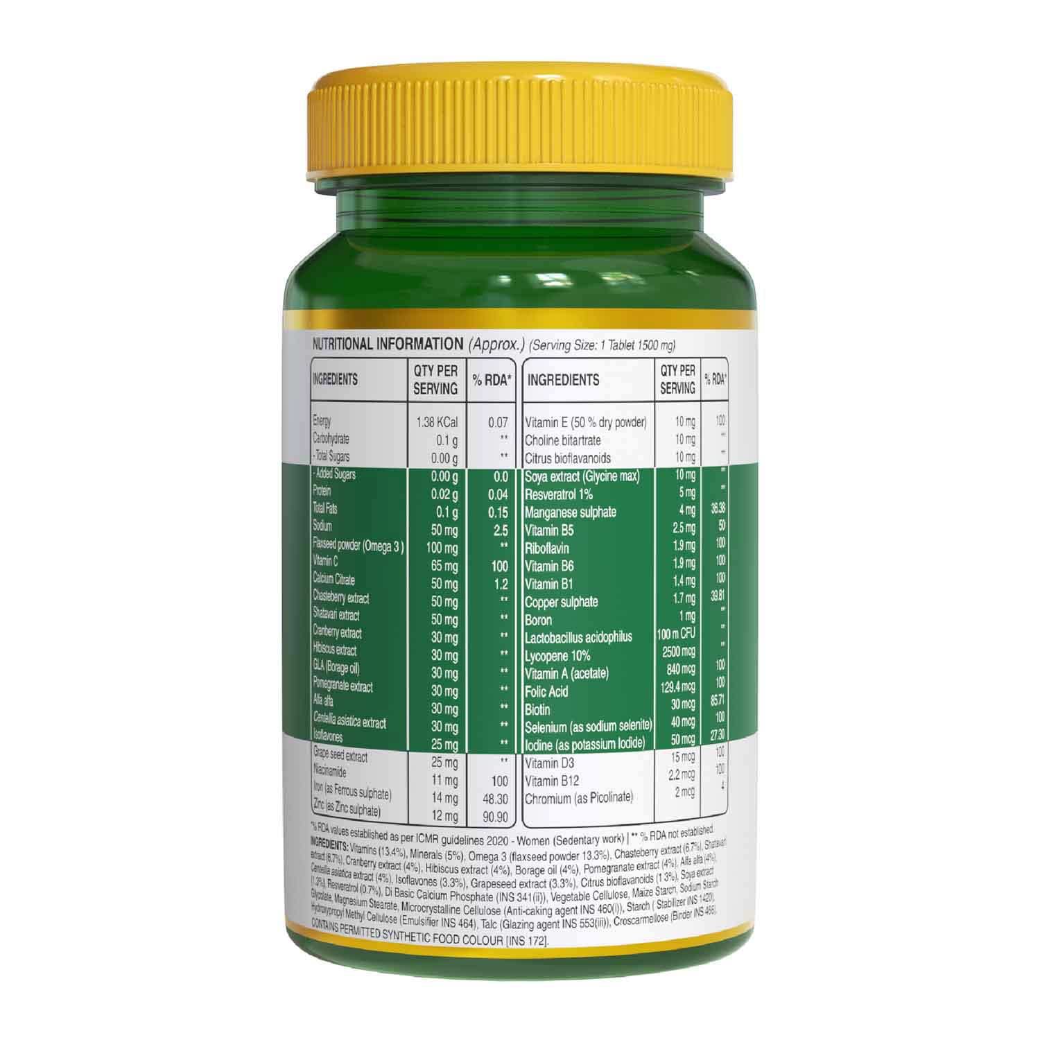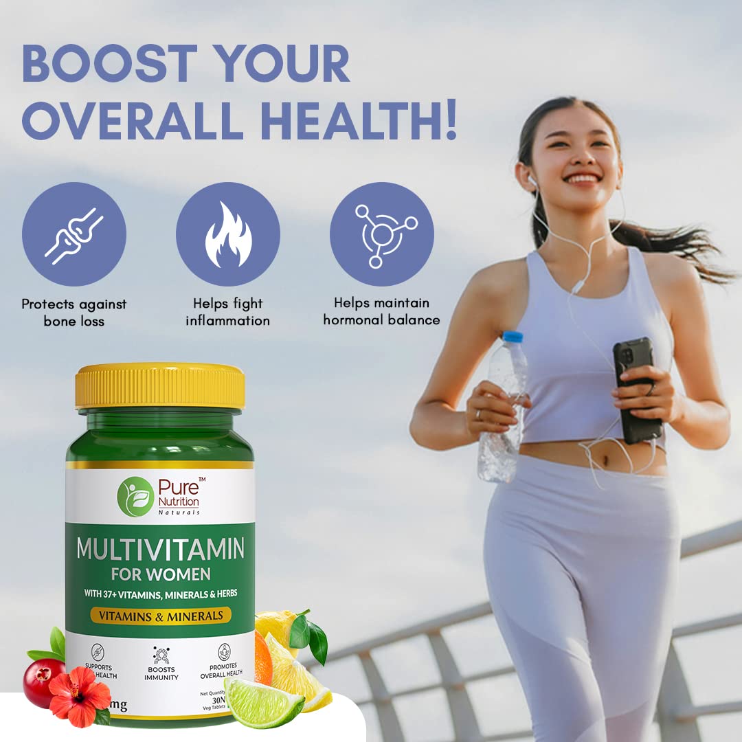 Pure Nutrition Multivitamin for Women (1500mg) 60 Veg Tabs with Biotin Iron Alfa Alfa Moringa Ginseng Fenugreek & Green Tea | Supports Immunity Energy Stamina Bone & Overall Health