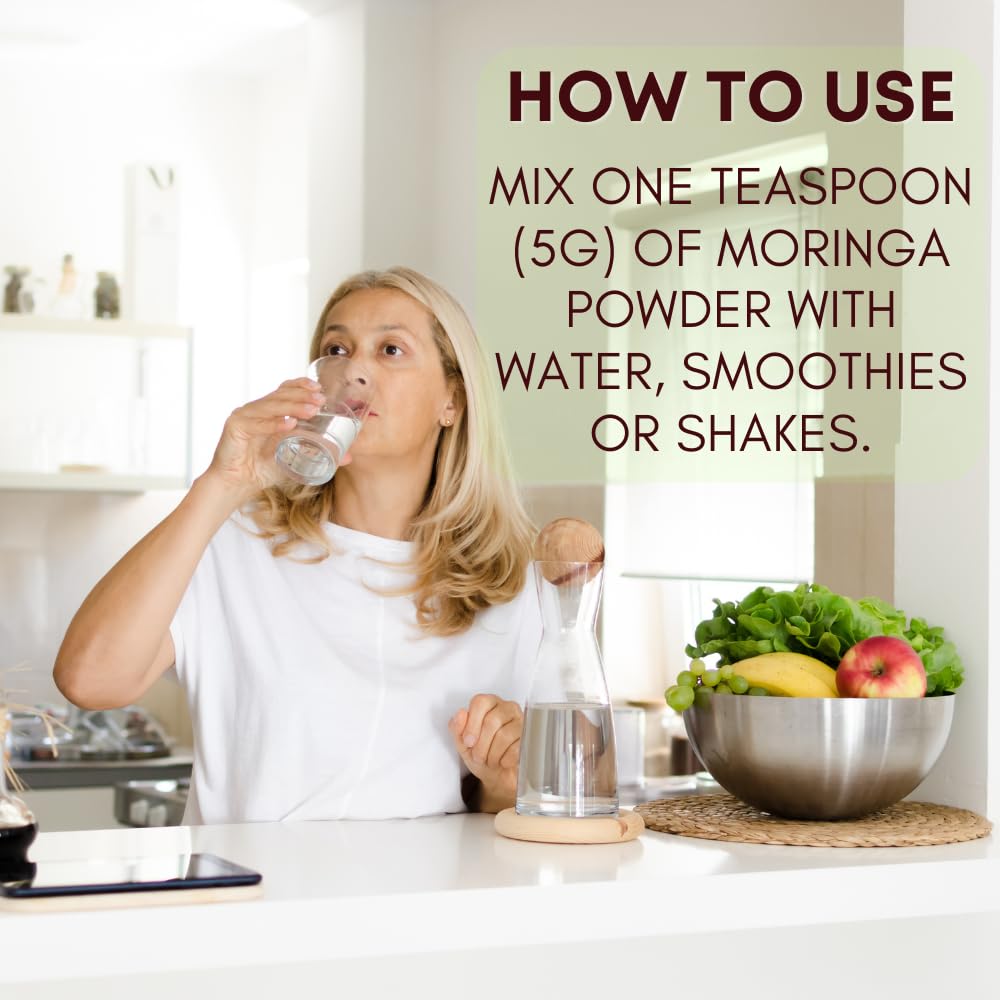 Supports Immune Health: This Moringa powder contains compounds that may help support immune function potentially contributing to overall wellness and vitality.