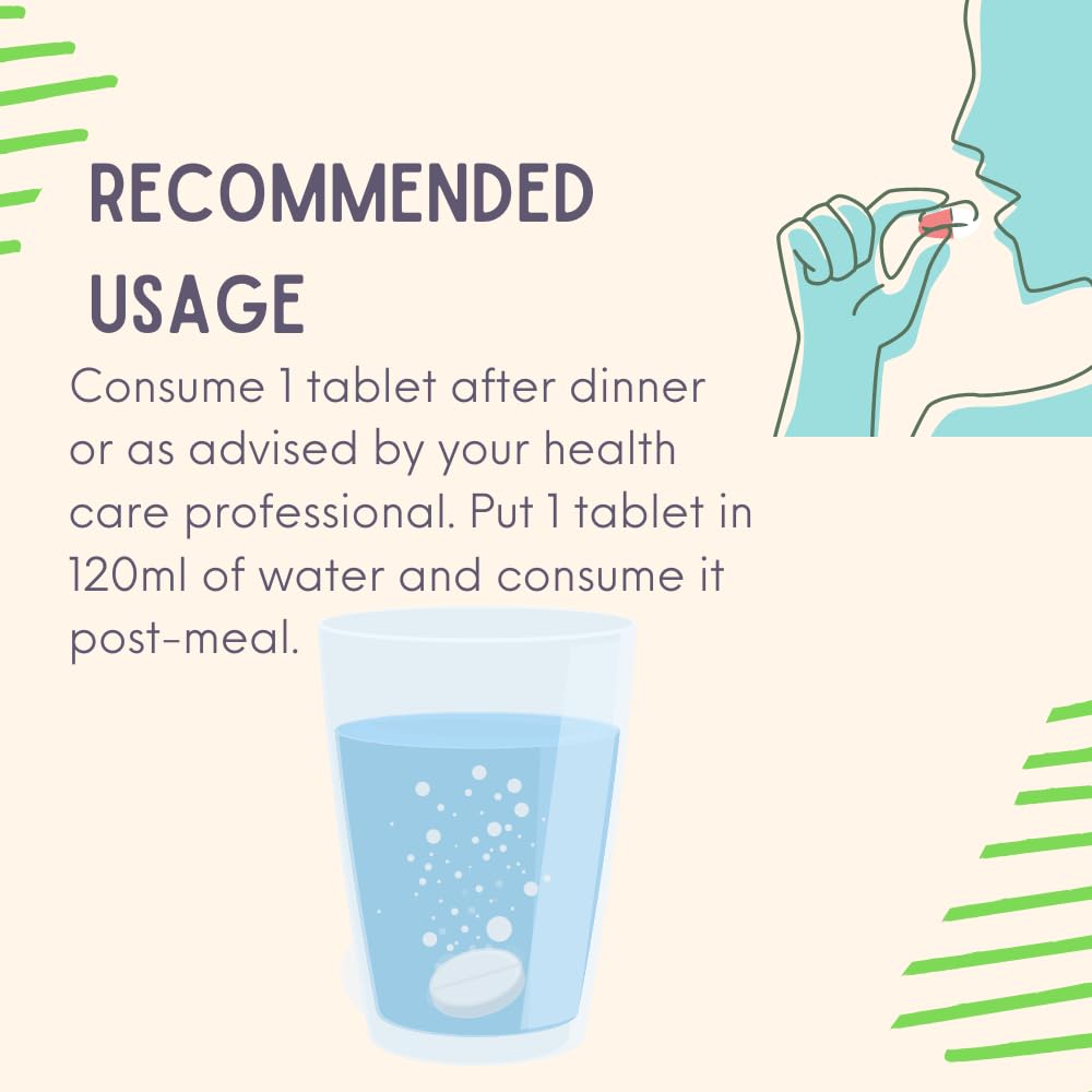 RECOMMENDED USAGE - Dissolve one Effervescent table in 200 ml water and consume or as directed by your healthcare professional