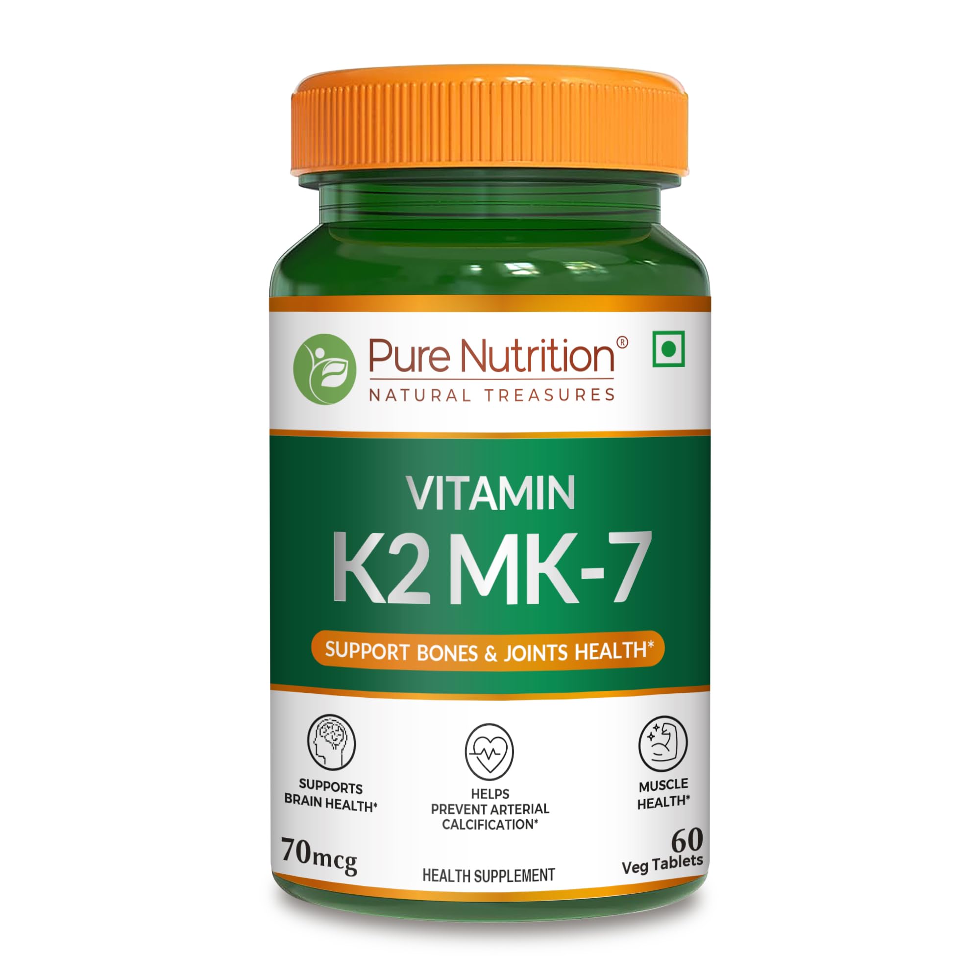 Pure Nutrition Vitamin K2 MK-7 - 60 Veg Tablets | Supports Stronger Bones Cardiovascular Health & Cognitive Function | Natural Bone Health Supplement for Men & Women | Enhances Calcium Absorption & Distribution