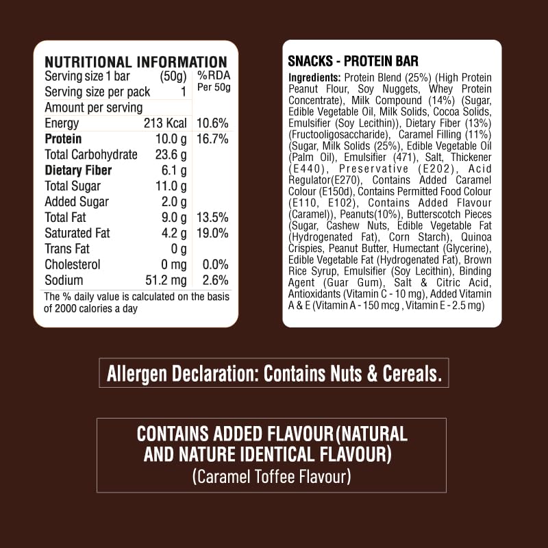 RiteBite Max Protein 10G Daily Salt & Caramel Protein Bars Pack Of 6 Fiber Vitamins & Minerals No Preservatives 100% Veg No Added Sugar350 Grams