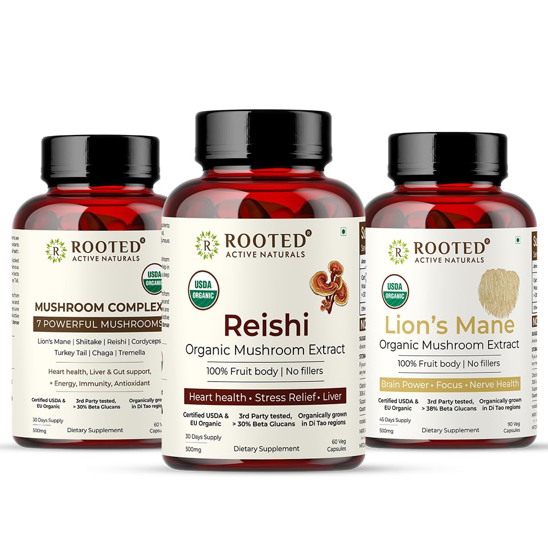 Unlock the power of nature's bounty with this remarkable blend of organic medicinal mushrooms. Carefully curated this potent combination comprises Lion's Mane Shiitake Reishi Cordyceps Turkey Tail Chaga and Tremella mushrooms. Each variety offers unique benefits from bolstering immunity and liver function to supporting gut health and overall wellness. The Lion's Mane renowned for its nootropic properties enhances brain power focus and nerve health. Meanwhile the Reishi mushroom revered as the 'mushroom of immortality' is a woody superfood celebrated for its immune-modulating abilities. This synergistic blend harnesses the collective wisdom of these ancient fungi providing a comprehensive solution for optimal vitality. Embrace the transformative potential of nature's gifts and elevate your well-being with this meticulously crafted mushroom complex.