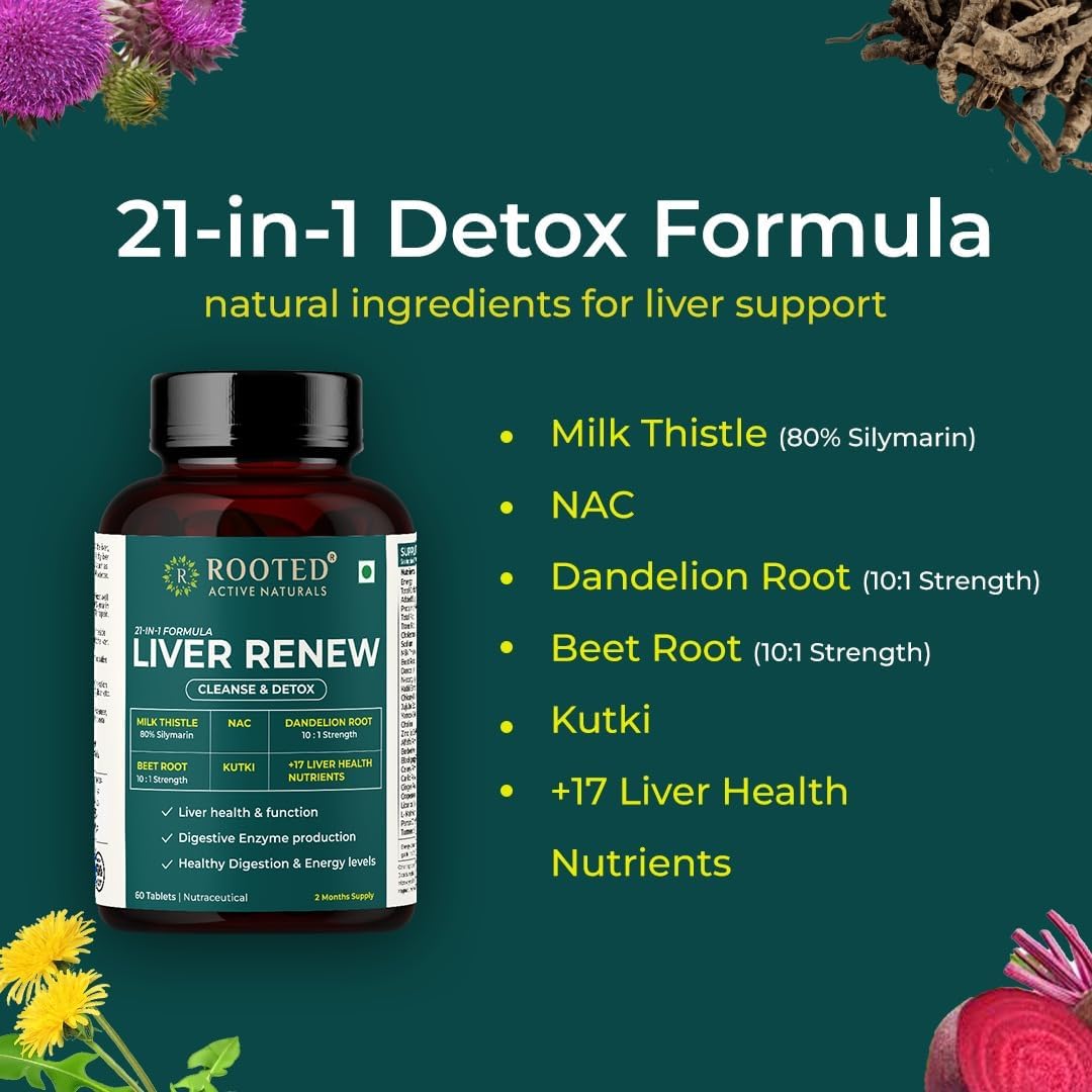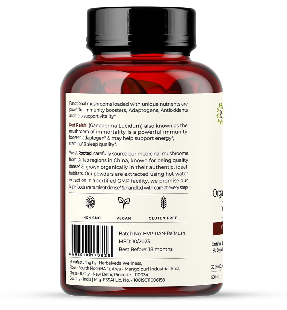 Rooted Actives Liver Renew & Reishi Mushroom Capsules (Pack of 2 60 caps each) offer a carefully crafted herbal and mushroom blend in convenient capsule form. Made with plant-based ingredients these capsules are vegan non-GMO and gluten-free with no artificial fillers or additives. This easy-to-use supplement is a great addition to any wellness routine eliminating the need for powders or complex preparations. With a pack of 2 you get a versatile and convenient supply for daily use.