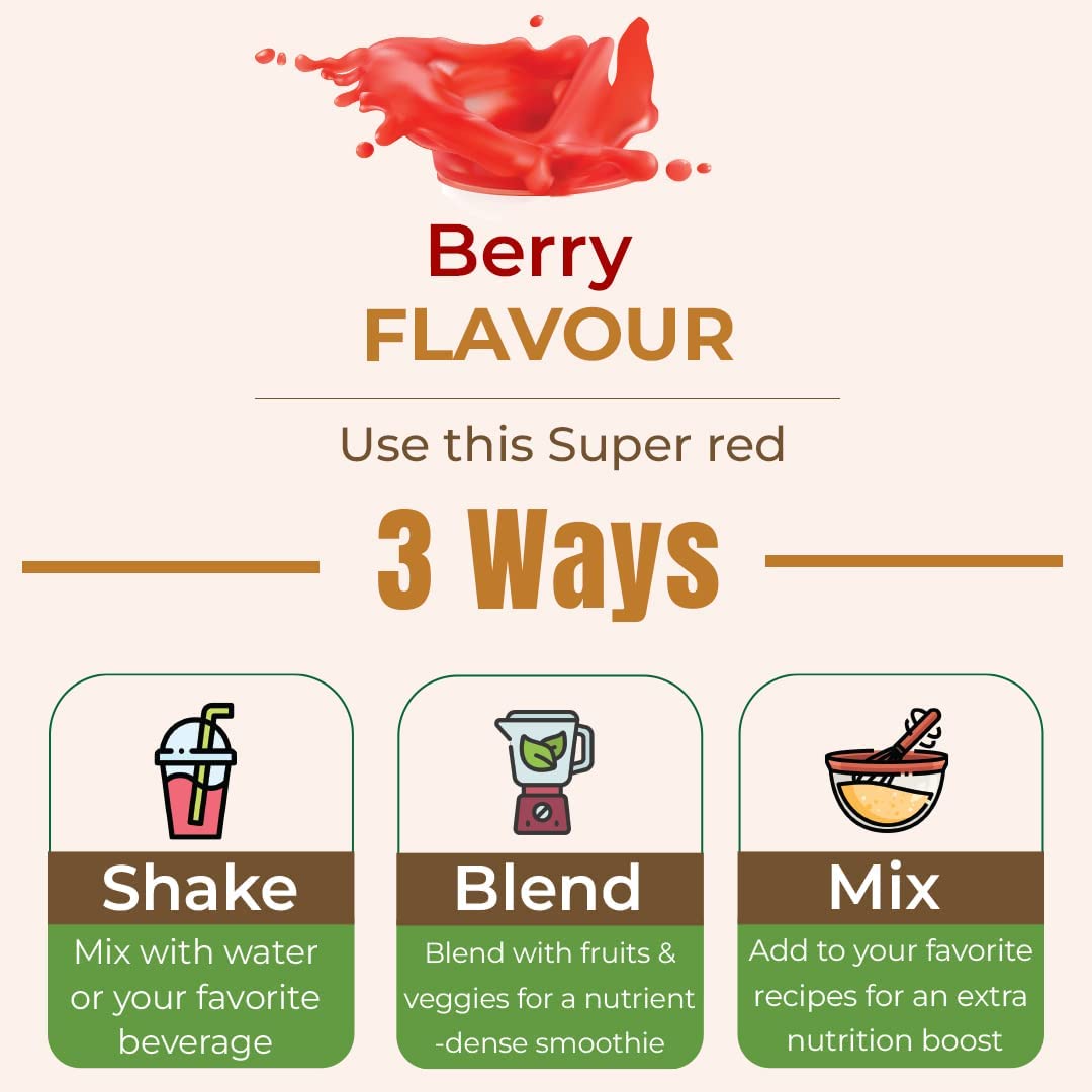 Rooted Actives Super Reds Powder (Pack of 3 250g each) is a flavorful blend of 21 nutrient-packed superfruits and berries including grapes raspberries beetroot strawberries acai berry pomegranate apple papaya and pineapple. This vegan non-GMO and gluten-free powder contains no artificial additives or added sugar making it an ideal addition to your daily nutrition routine. Enjoy the naturally delicious berry flavor by mixing it into water smoothies or shakes.