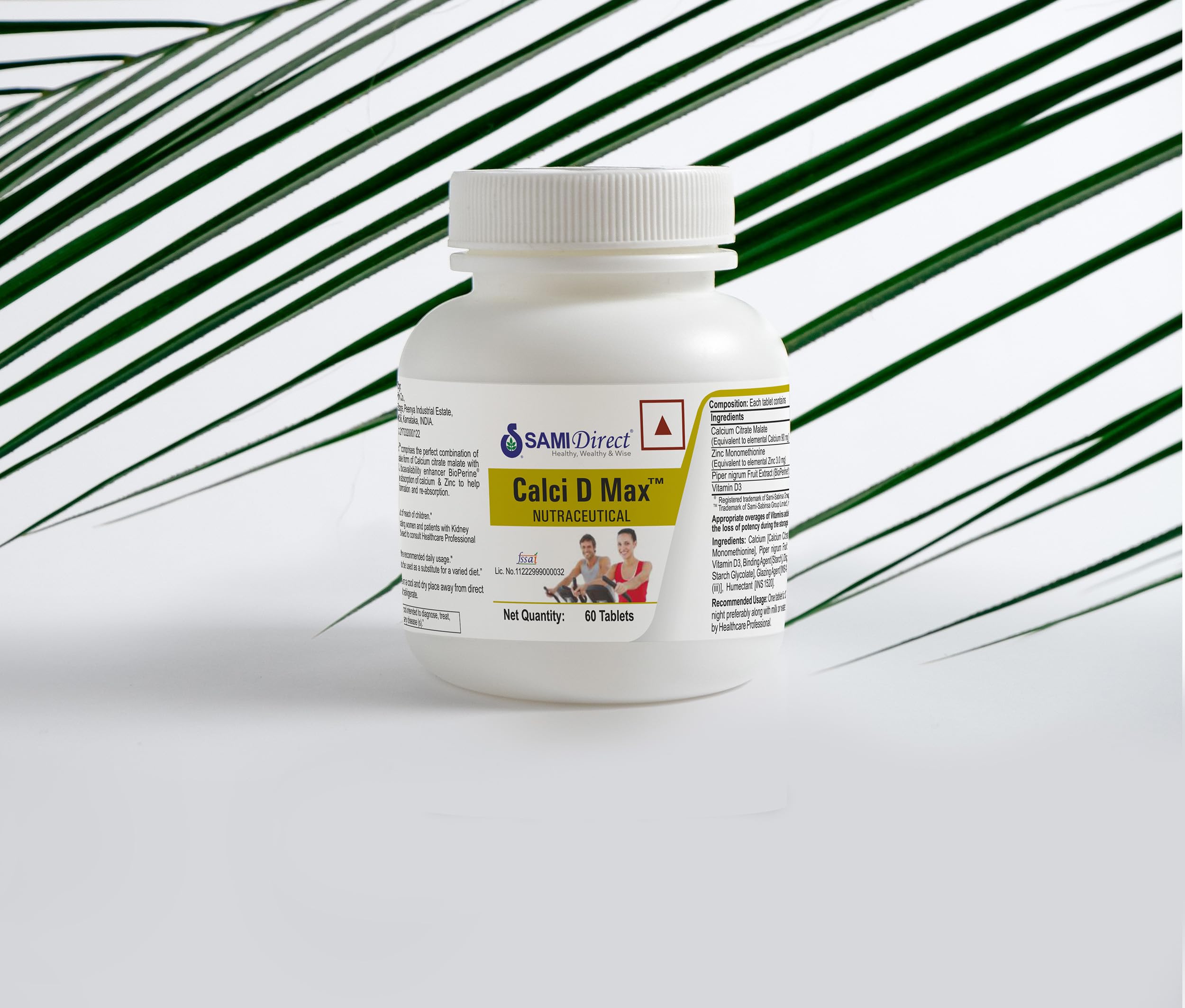 Calci D Max is a potent combination of clinically proven ingredients to support bone health. Formulated with the combination of Calcium Citrate Malate Vitamin D3 Zinc and BioPerine. BioPerine enhances the bioavailability of all the above ingredients.