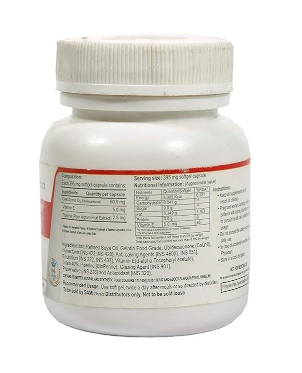 SAMI DIRECT COQ 10 ENERGIZER (CoQ 10) Vitamin E with Piperine Cellular Bio Energizer