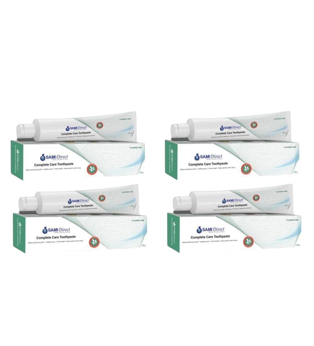 Discover comprehensive oral care with SAMI Direct Complete Care Toothpaste a fluoride-free herbal formulation designed for your daily dental needs. Each pack contains four 100g tubes offering excellent value for your family. This toothpaste is specially formulated to promote white and strong teeth maintain healthy gums ensure fresh breath and help prevent tooth decay. The herbal-based formula provides a natural approach to oral hygiene while being gentle on your teeth and gums. The convenient 100g size is perfect for both individual use and family sharing. Whether you're looking to maintain oral hygiene or enhance your smile this complete care toothpaste offers a holistic solution for your dental care routine. Experience the confidence that comes with thorough oral care and make this toothpaste an essential part of your daily regimen.
