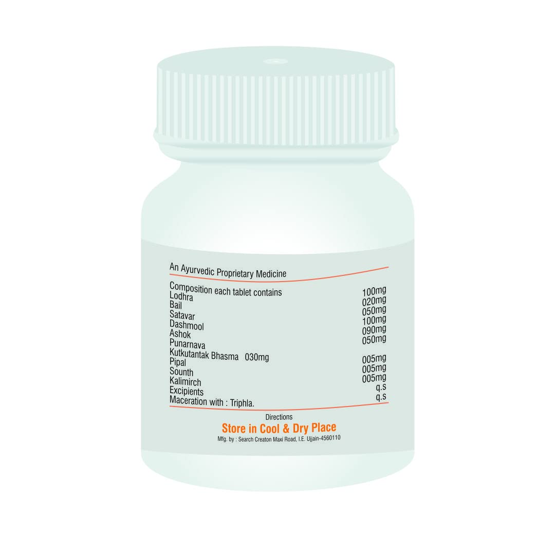 Gynex Tablet An Ayurvedic Composition Each Tablet Contains Lodhra -100mgBall-020mgSatavar-050mg.Dashmool-100mgAshok-090mg Punarnava-050mgKutkutantak Bhasma-030mgPipal-005m.Sounth-005mg Kalimirch-005mg