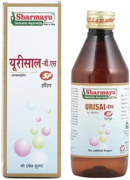 Sharmayu Urisal-DS SF Syrup is a powerful Ayurvedic alkalizer designed to support urinary tract health and maintain a healthy pH balance in the body. This sugar-free (SF) formulation is particularly beneficial for individuals suffering from urinary discomfort burning sensation or urinary tract infections (UTIs). Formulated using time-honored Ayurvedic herbs Urisal-DS helps to flush toxins from the urinary system and supports kidney function. Its cooling and soothing properties aid in reducing inflammation and irritation in the urinary tract while promoting better fluid regulation in the body. Made by Sharma Ayurved Mandir (Sharmayu) a legacy brand known for authentic Ayurvedic products since 1960 this syrup contains no added sugarâmaking it suitable for diabetic patients and those managing sugar intake. Ideal for both men and women this herbal formula helps promote a healthy bladder and kidneys supports detoxification and enhances overall urinary well-being. Best consumed as directed by an Ayurvedic physician.