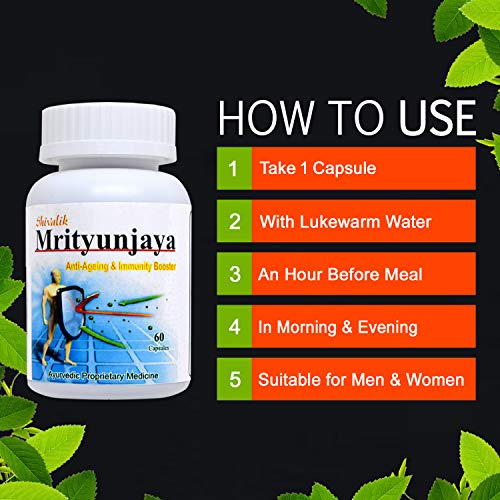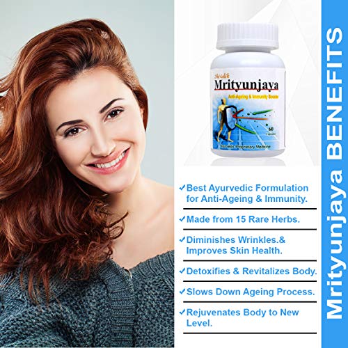 Mrityunjaya is perfect anti-ageing and immunity booster. With the advancement of age the body deteriorates and there is decrease in bone density energy and immunity system weakens up. Though some changes due to ageing are inevitable but others can be controlled. Mrityunjaya is the combination of 15 herbal and natural extracts that helps to detoxify and revitalizes your body cells and boost immunity.