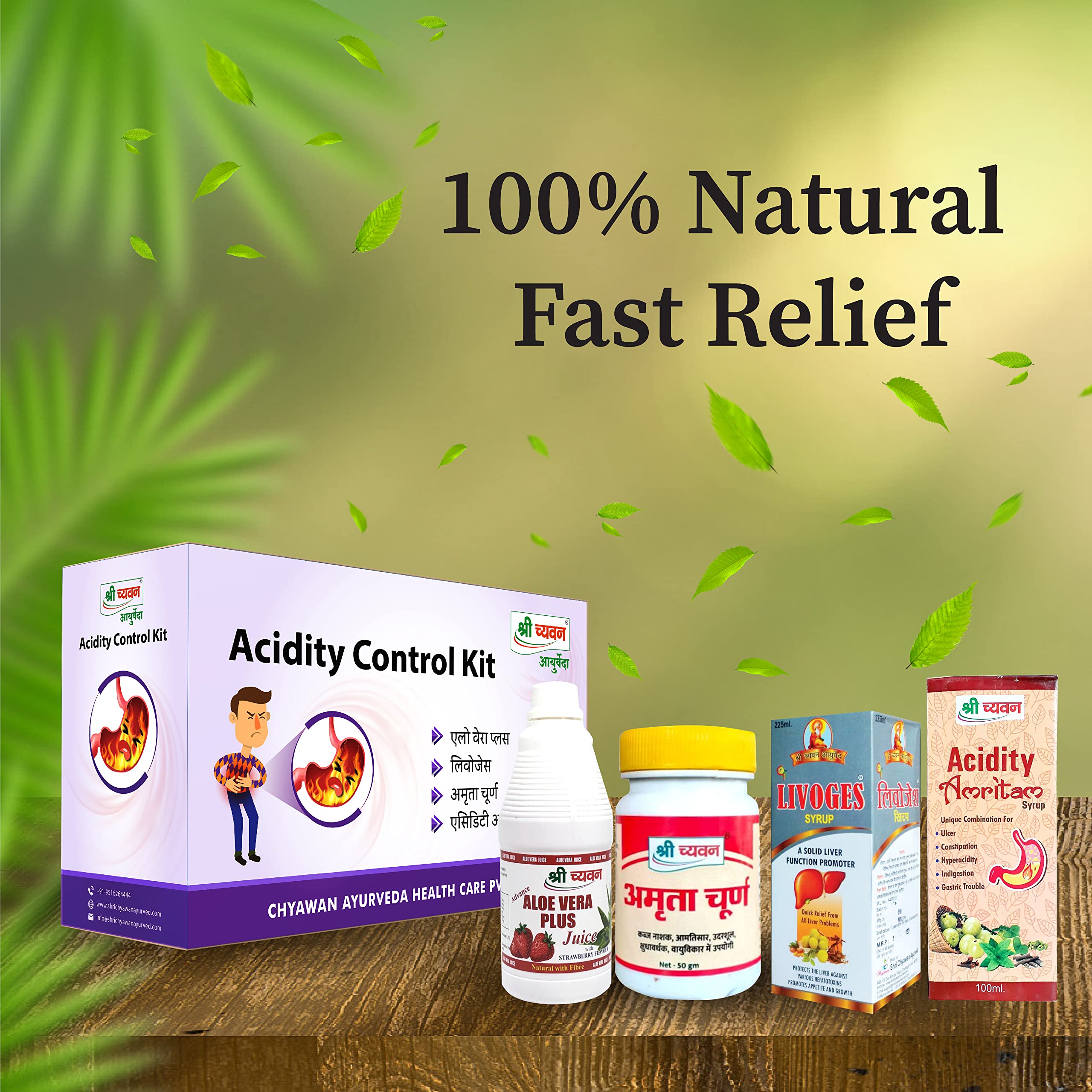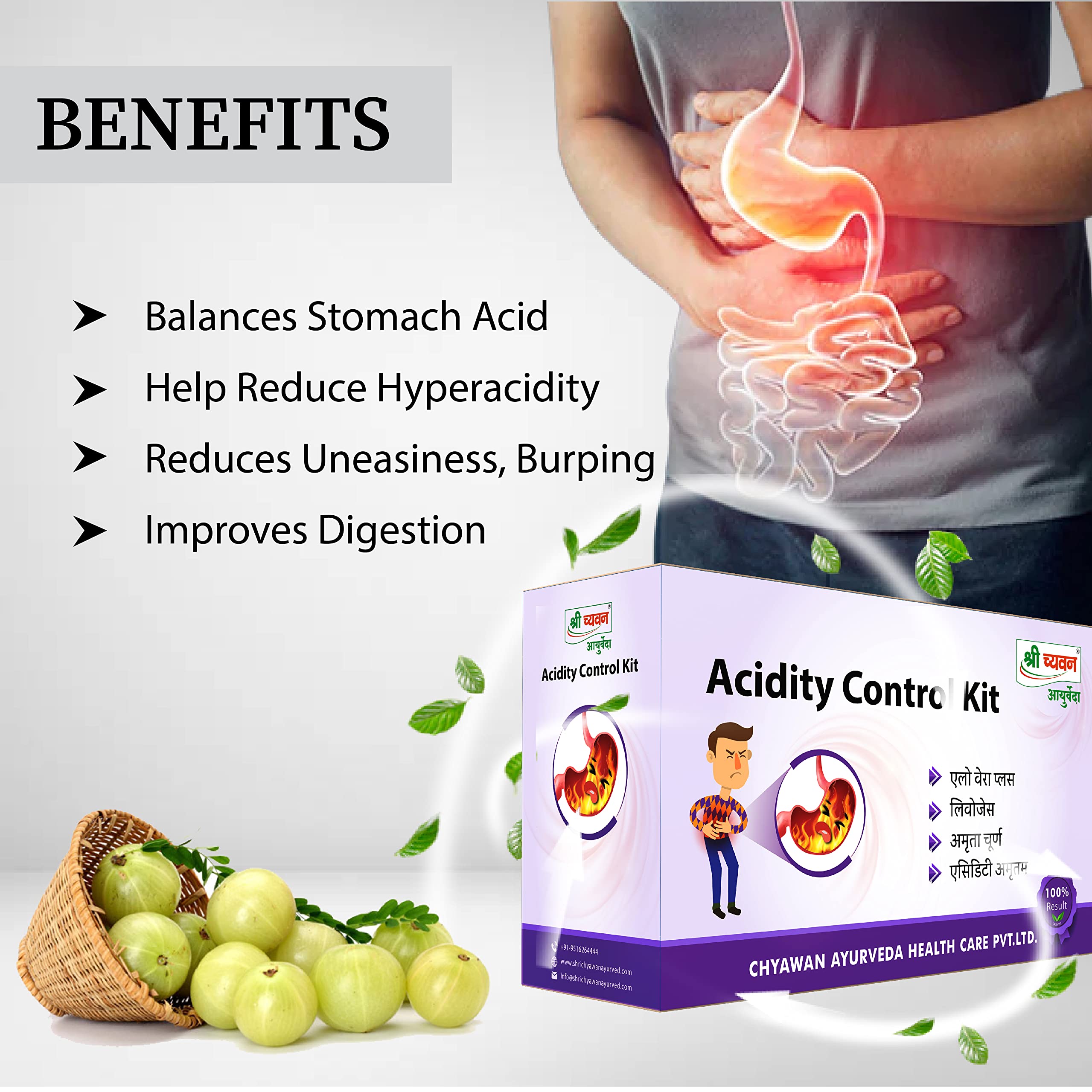 Improves Digestion: Shri Chyawan Ayurveda Acidity Control Kit effectively helps to cure your problems related to digestive system and facilitates smooth digestion process.