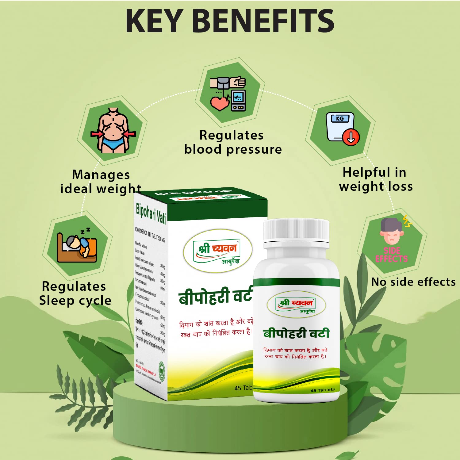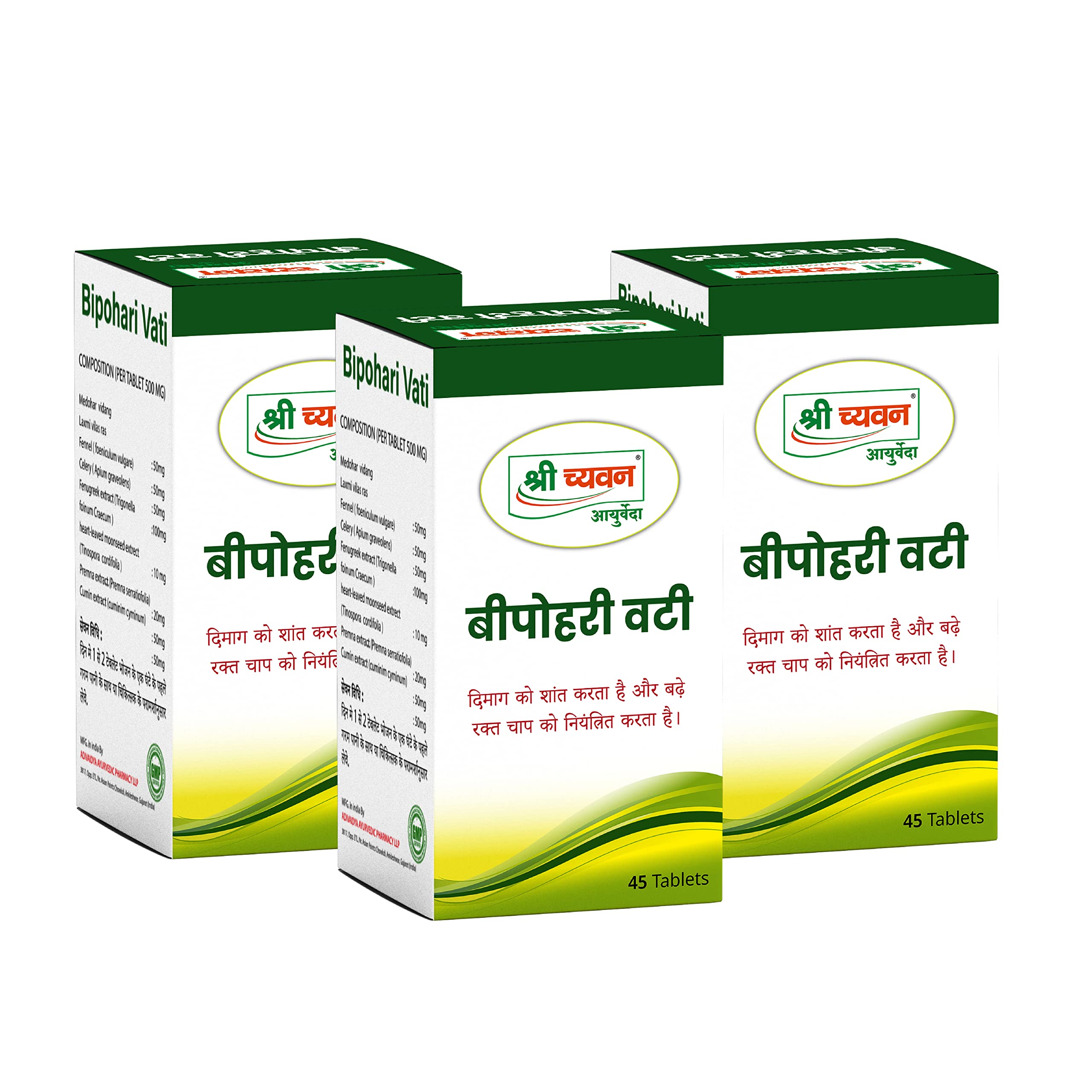Shri Chyawan Ayurveda Bipo Hari Vati - 45 Tab |Control Blood Pressure | Reduce Stress | (Pack of 3)