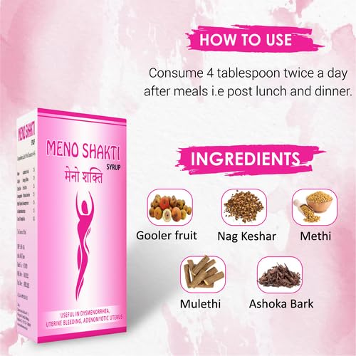 Shri Chyawan Ayurveda's Menoshakti Syrup helps in regulating irregular periods and hormonal imbalance. It helps to maintain the estrogen levels considerably reduces stress and anxiety reduces hot flashes and night sweats.
