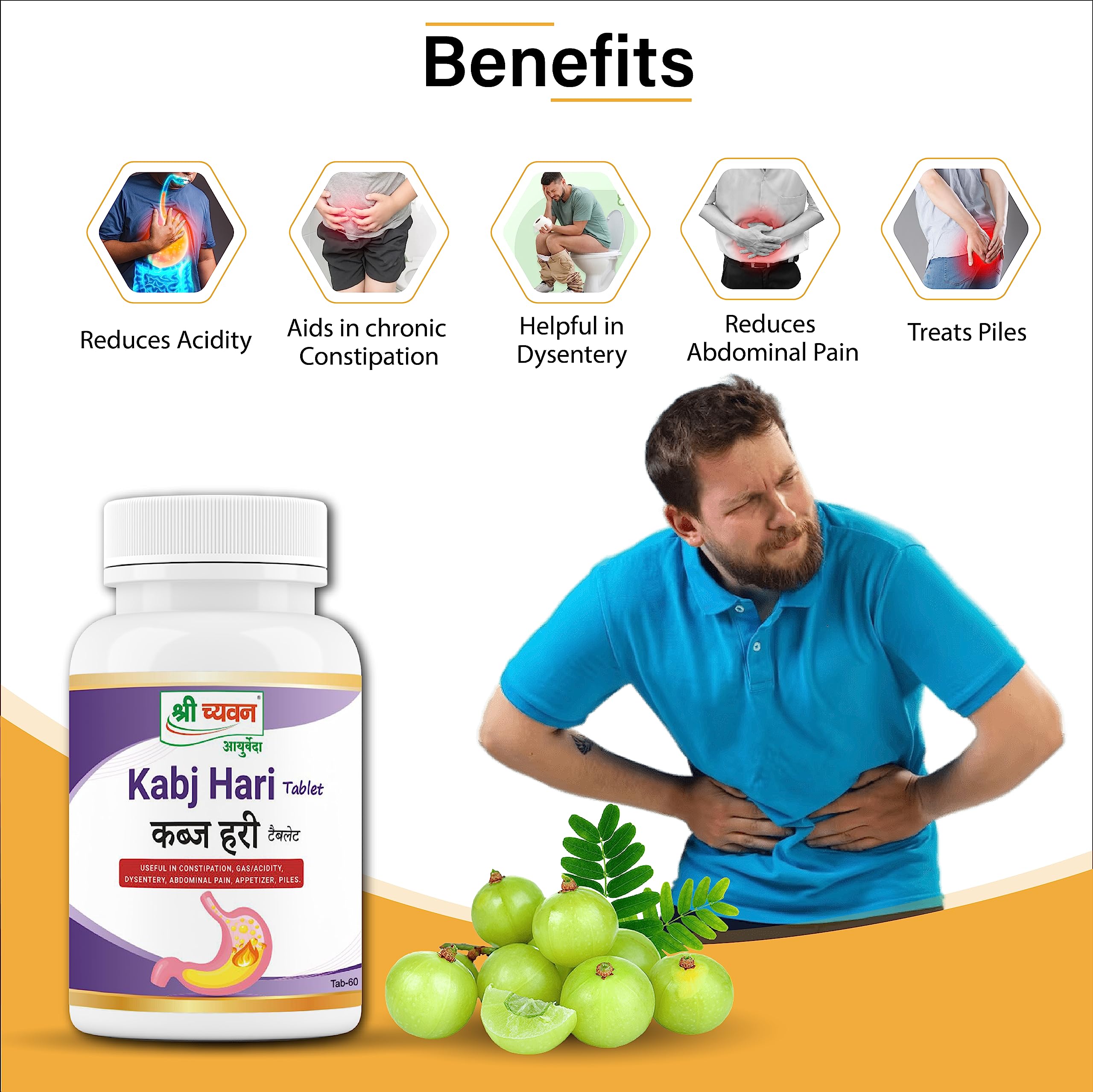 Shri Chyawan Kabj Hari Tablet -60 Tab |Balances Stomach Acid|Constipation | Reduces GasesUneasiness and Burping Hyperacidity | Balances Stomach Acid |(Pack of 2)