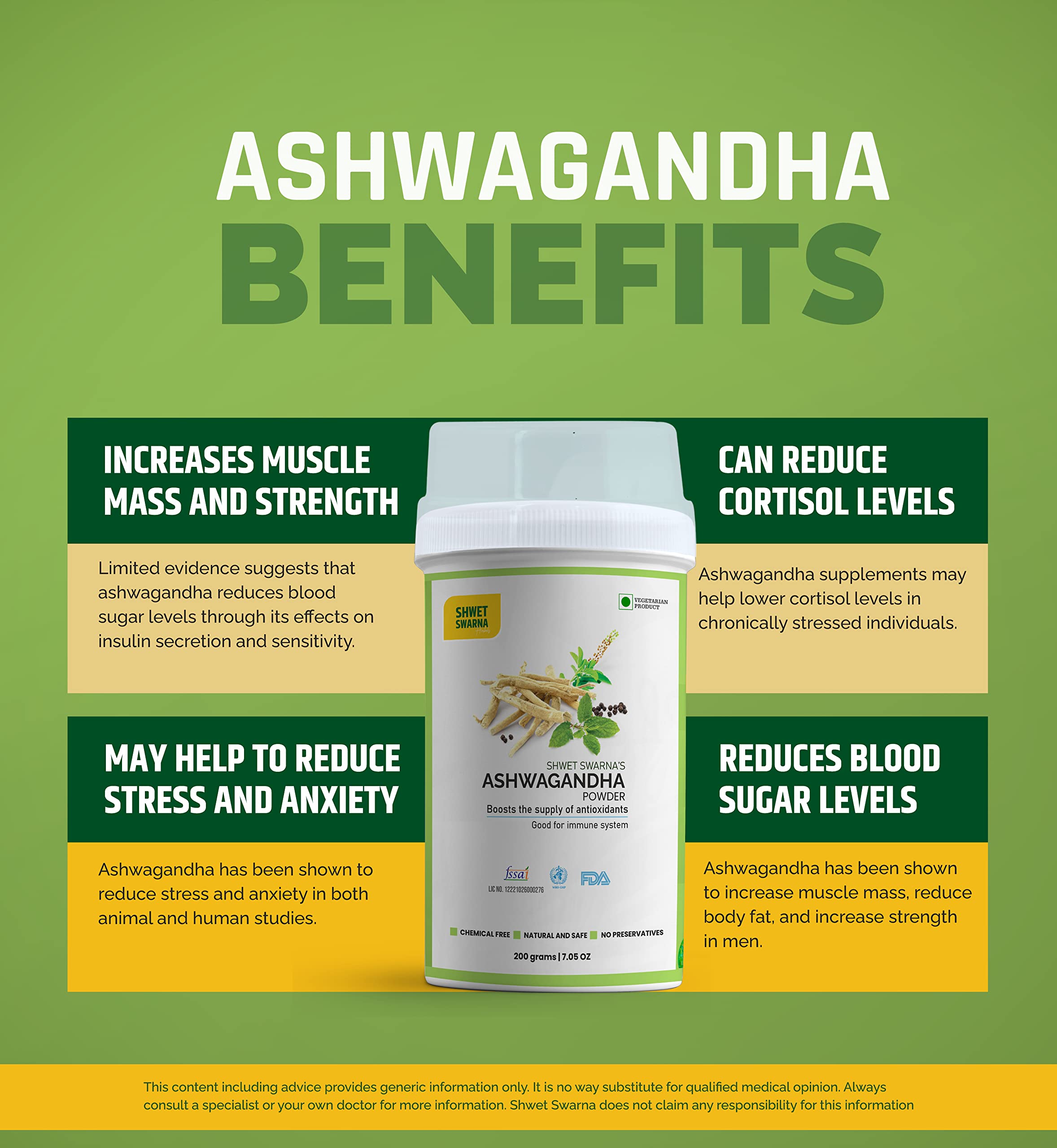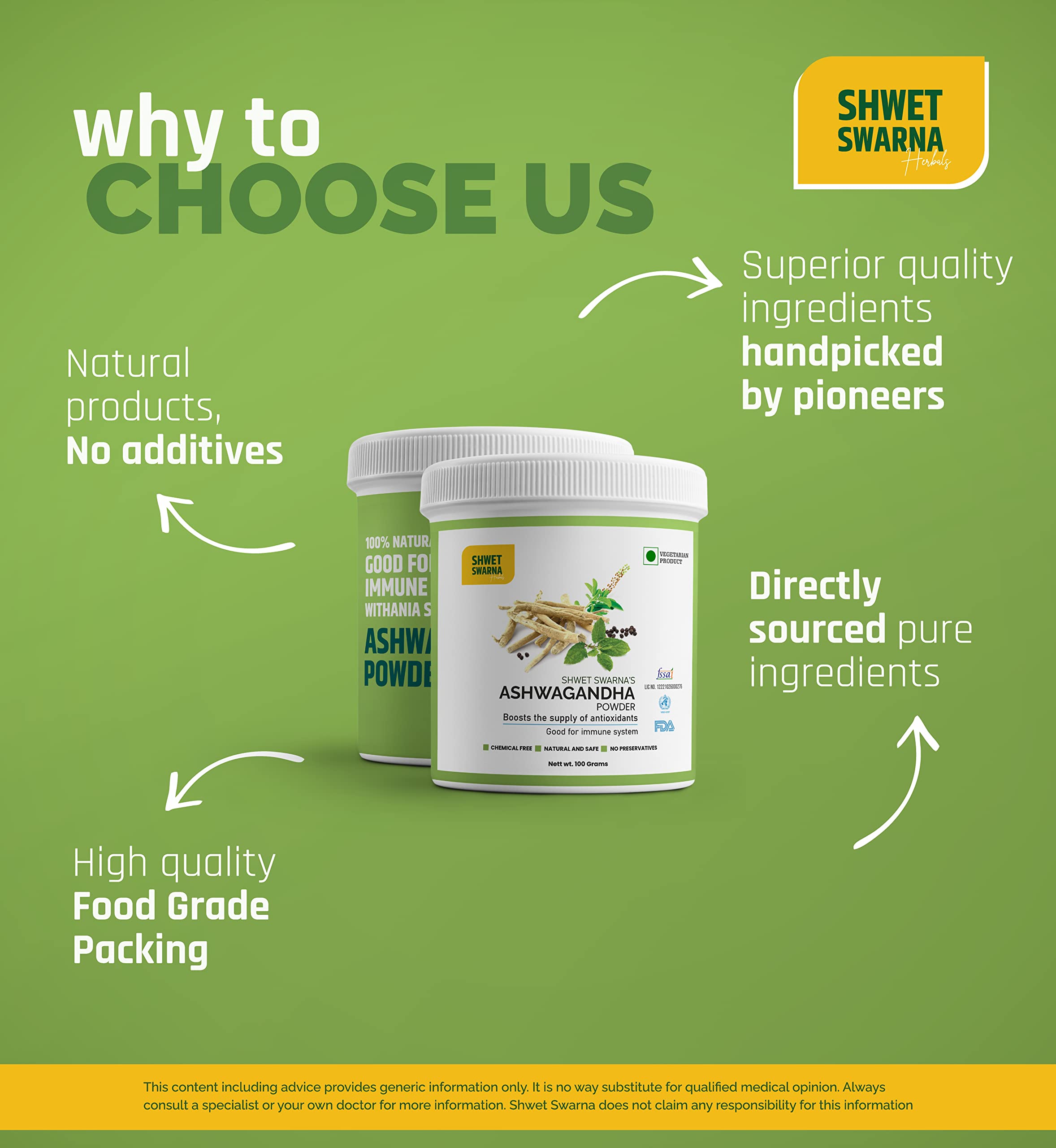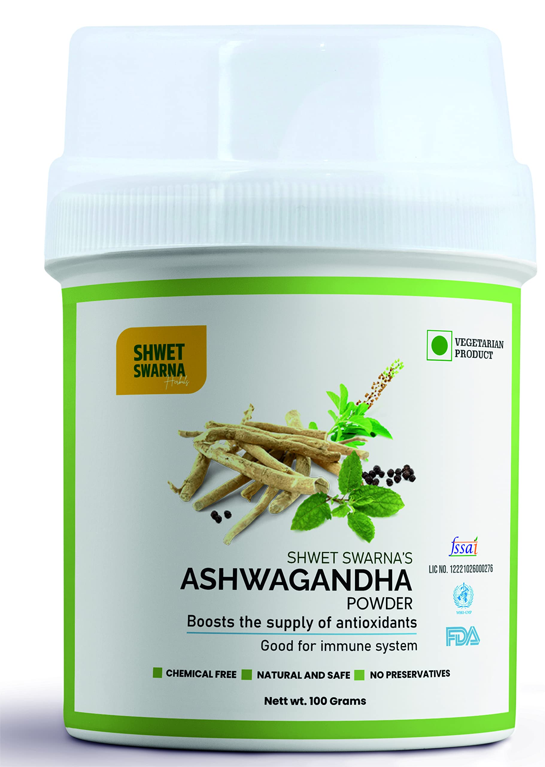 SHWET SWARNA 100% Natural & ASHWAGANDHA (Withania Somnifera) 100 Grams Powder