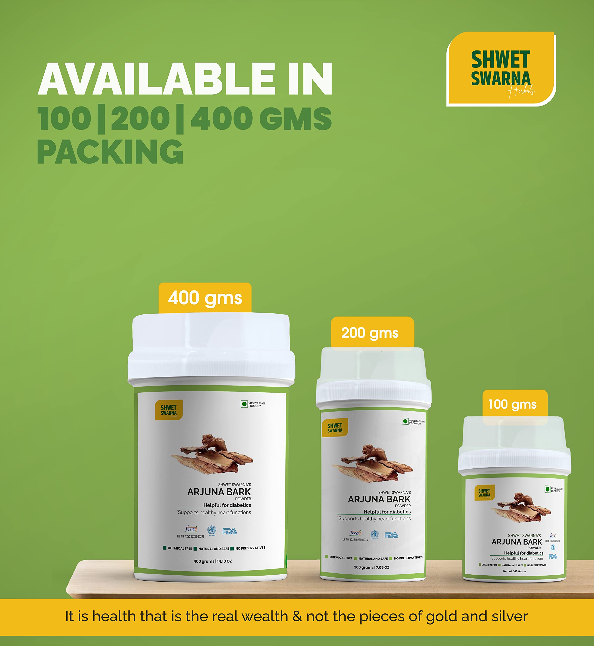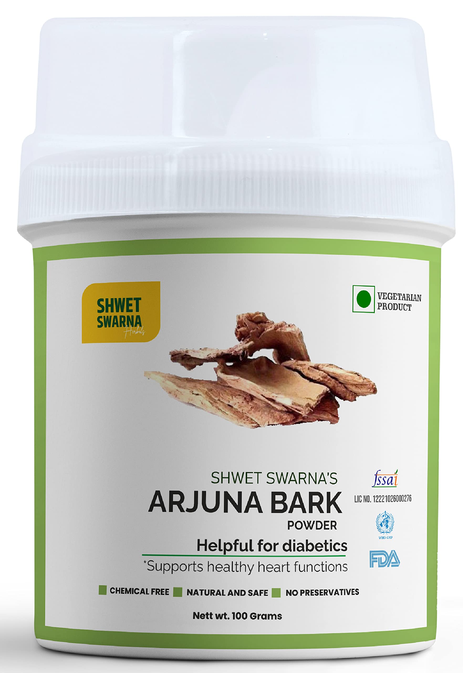 Arjuna scientific name; Terminalia arjuna belongs to the family of Combretaceae. Its bark decoction is being used in the Indian subcontinent for diabetes anginal pain hypertension based on the observations of ancient physicians for centuries. Arjuna contains the ingredients that help stimulate the heart. It might also help the heart by lowering cholesterol and blood pressure. 100% Natural & Organic ARJUNA (Terminalia Arjuna) Powder by Shwet Swarna FSSAI Certified 100 Grams Powder. Herbal Health Supplement is Helpful for Diabetics also supports Healthy Heart Functions.