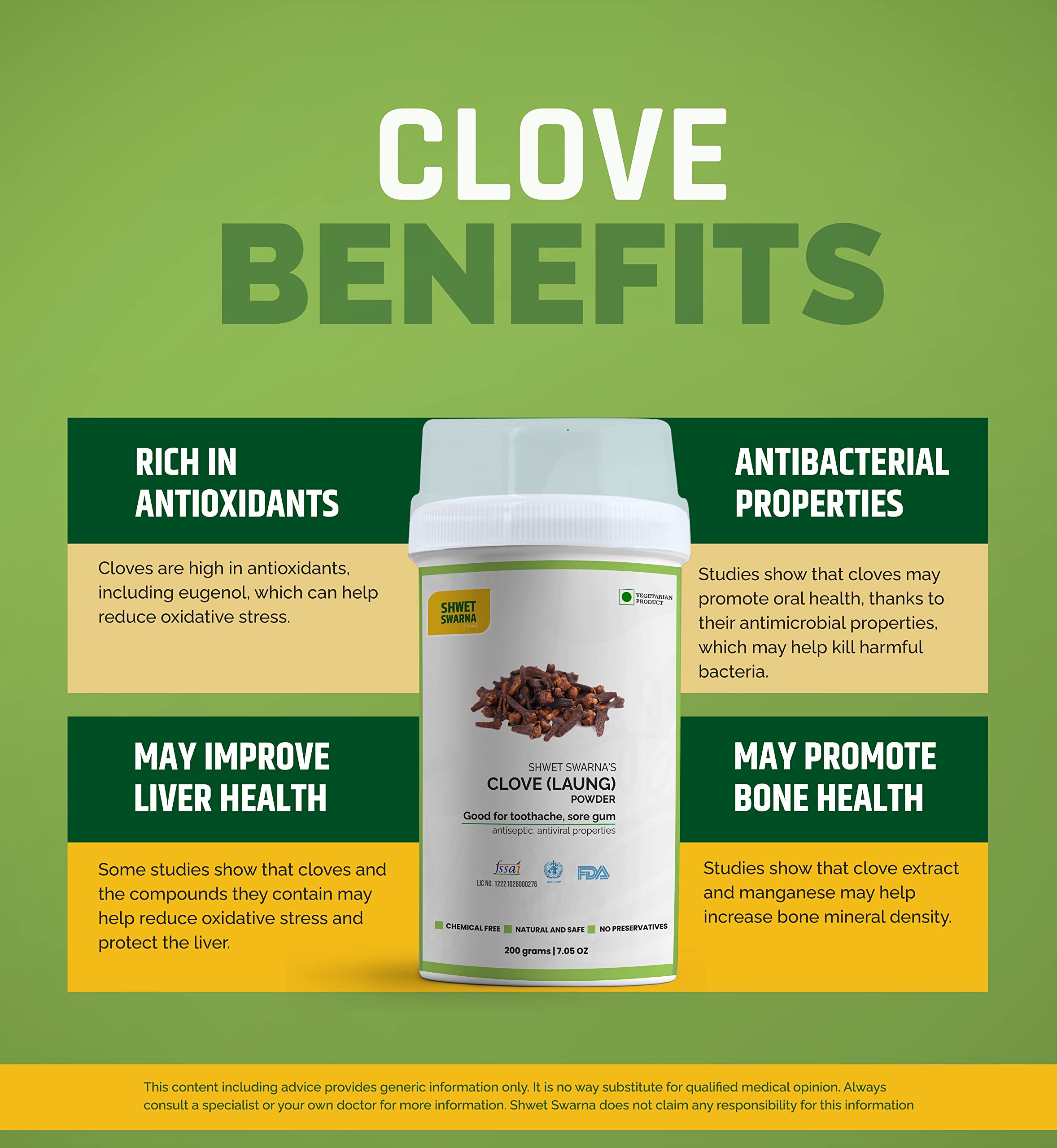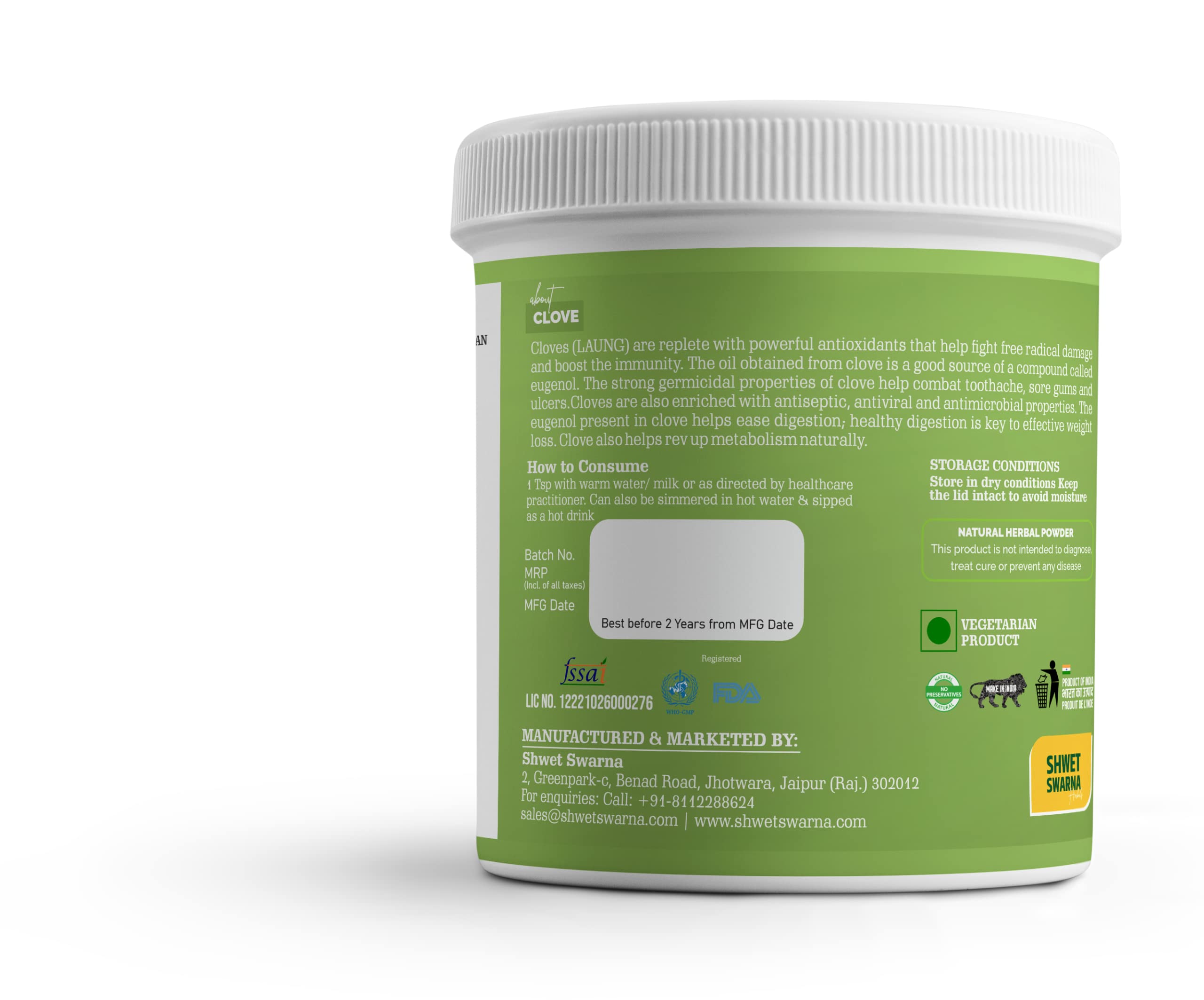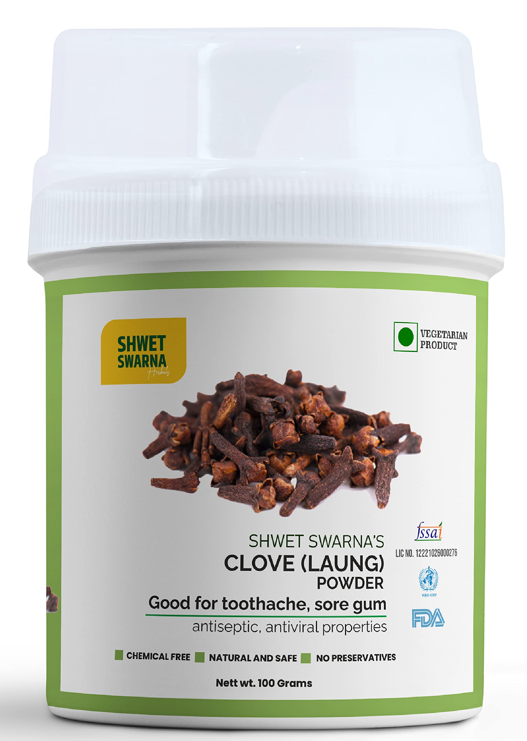 SHWET SWARNA Clove Powder Laung Powder Herbal Health Supplement in Toothache Infections and Sore Gum.Used In Home Kitchen Restaurants100 grm